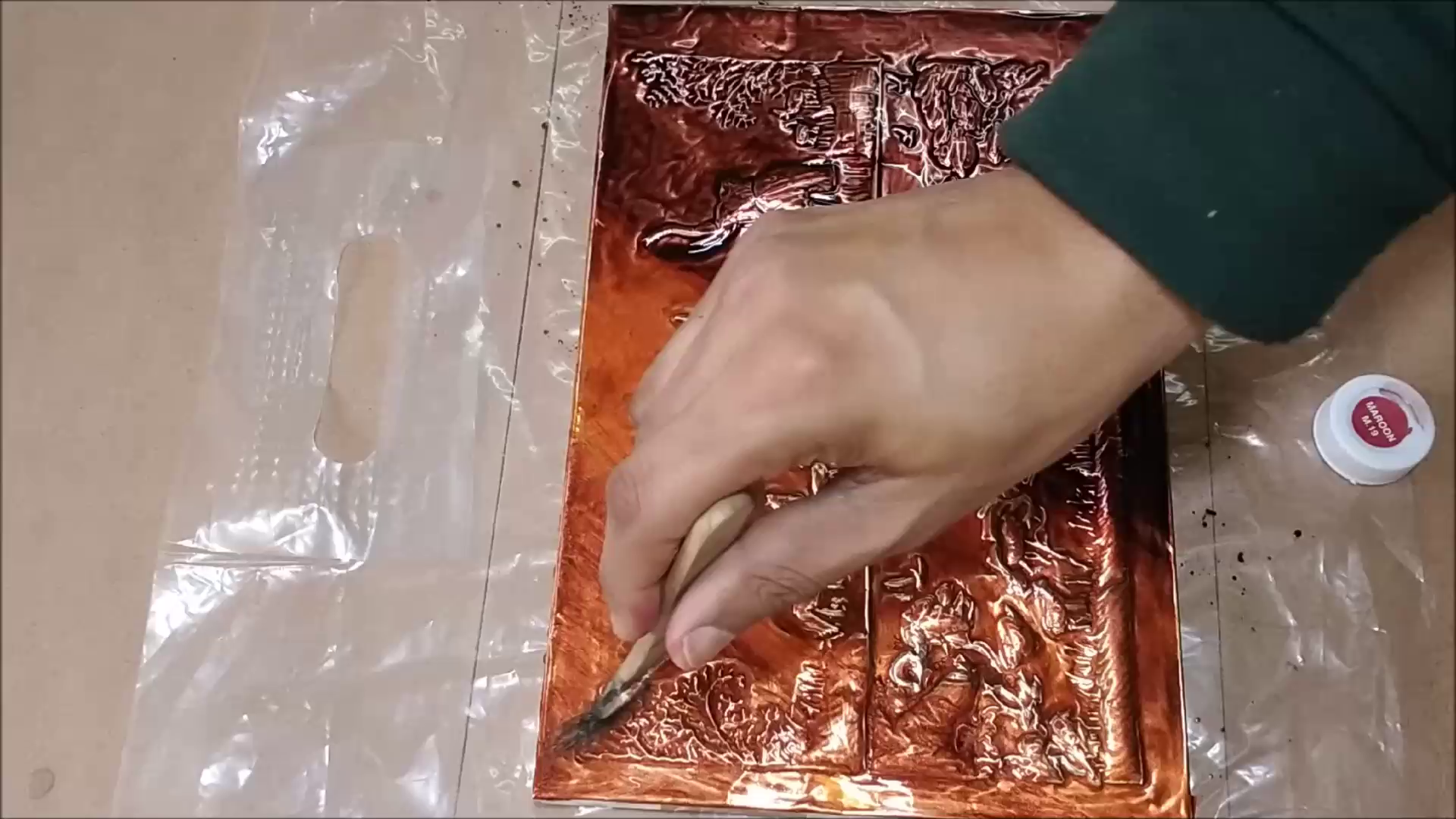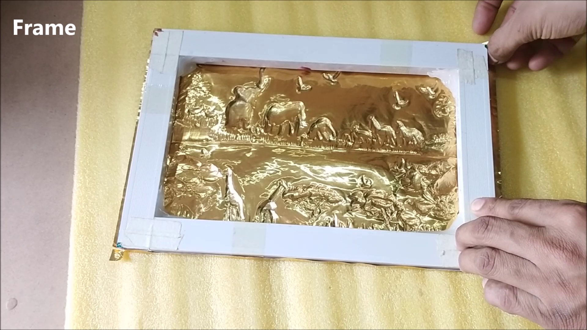 - I used masking take to fix pewter sheet on frame.