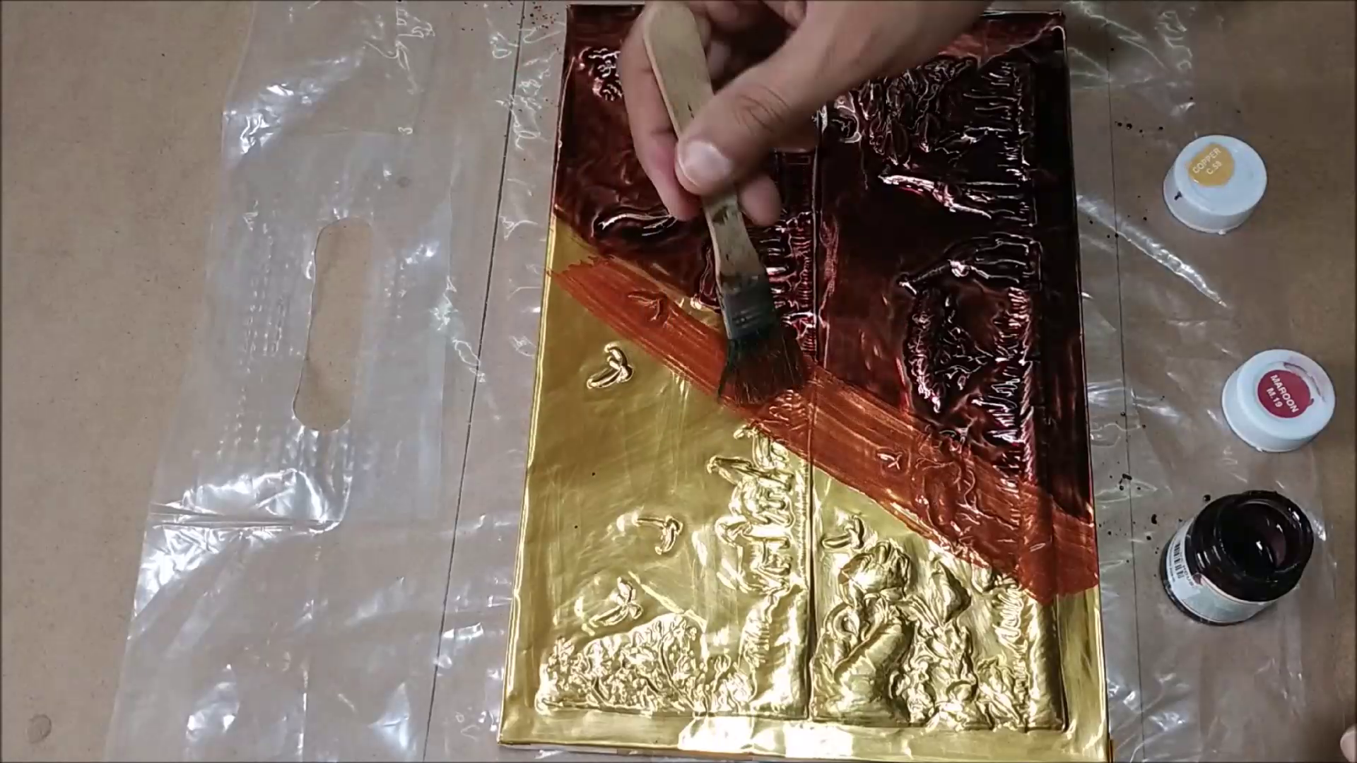 I applied Glass Paint Dark Brown and Light Brown.