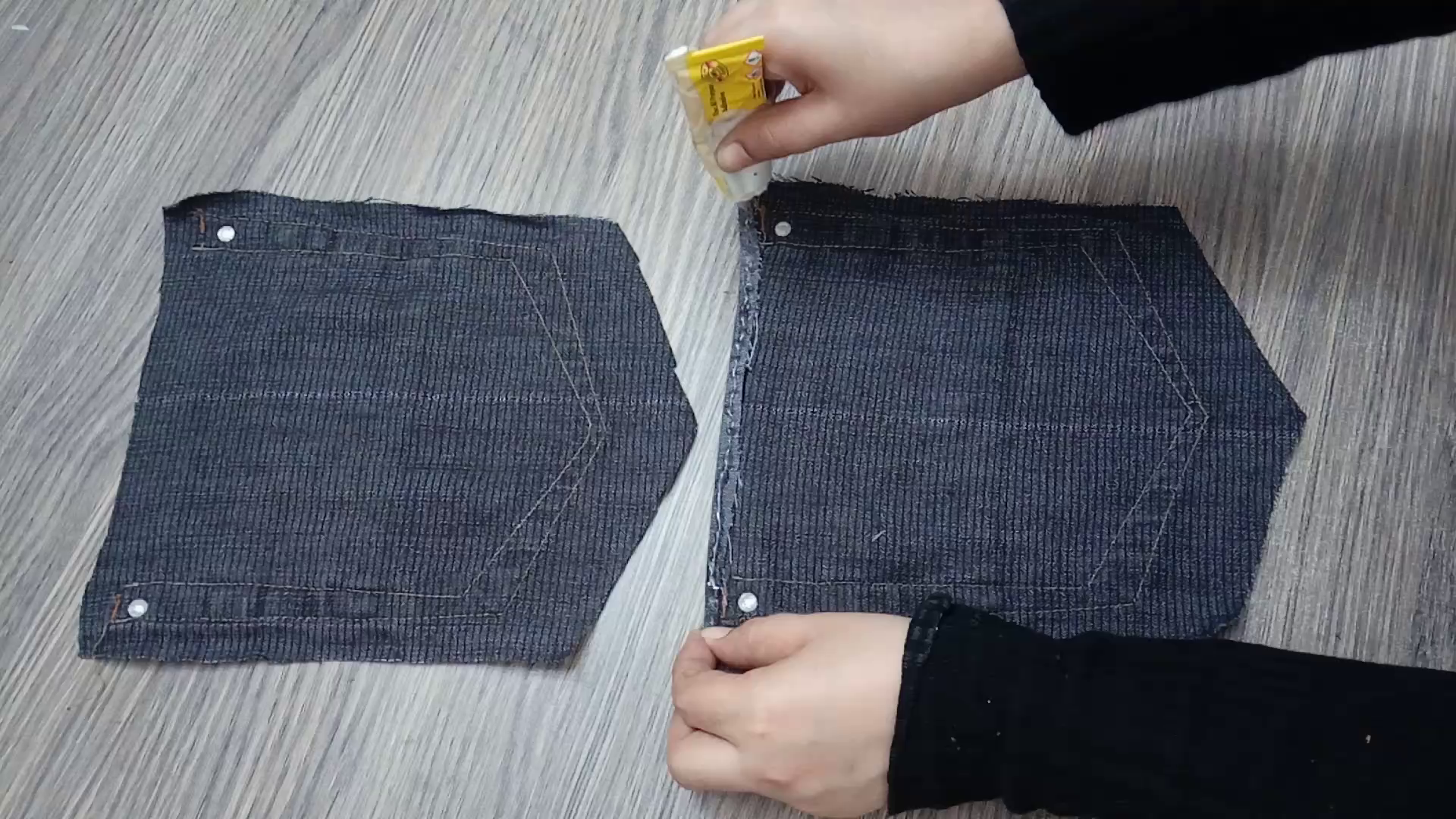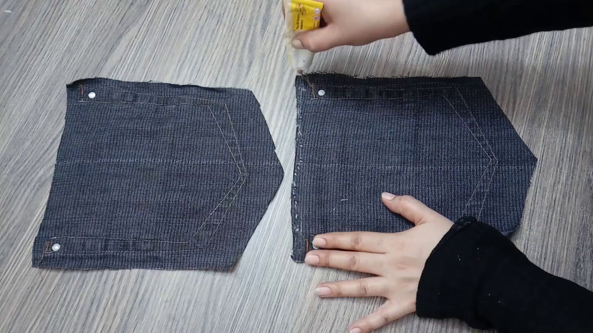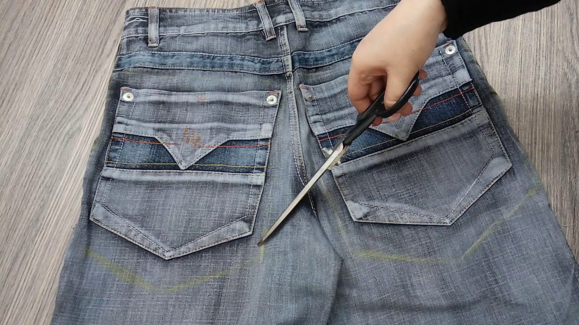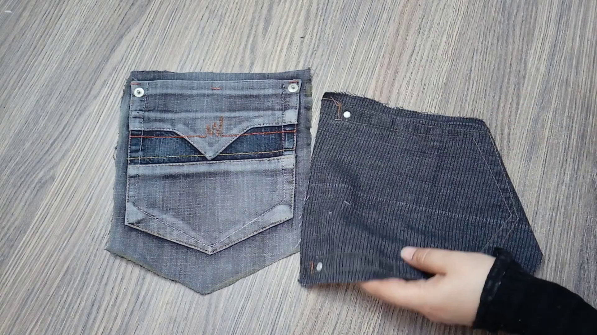 Take an old jeans pant and cut out the back pockets from leaving extra space.