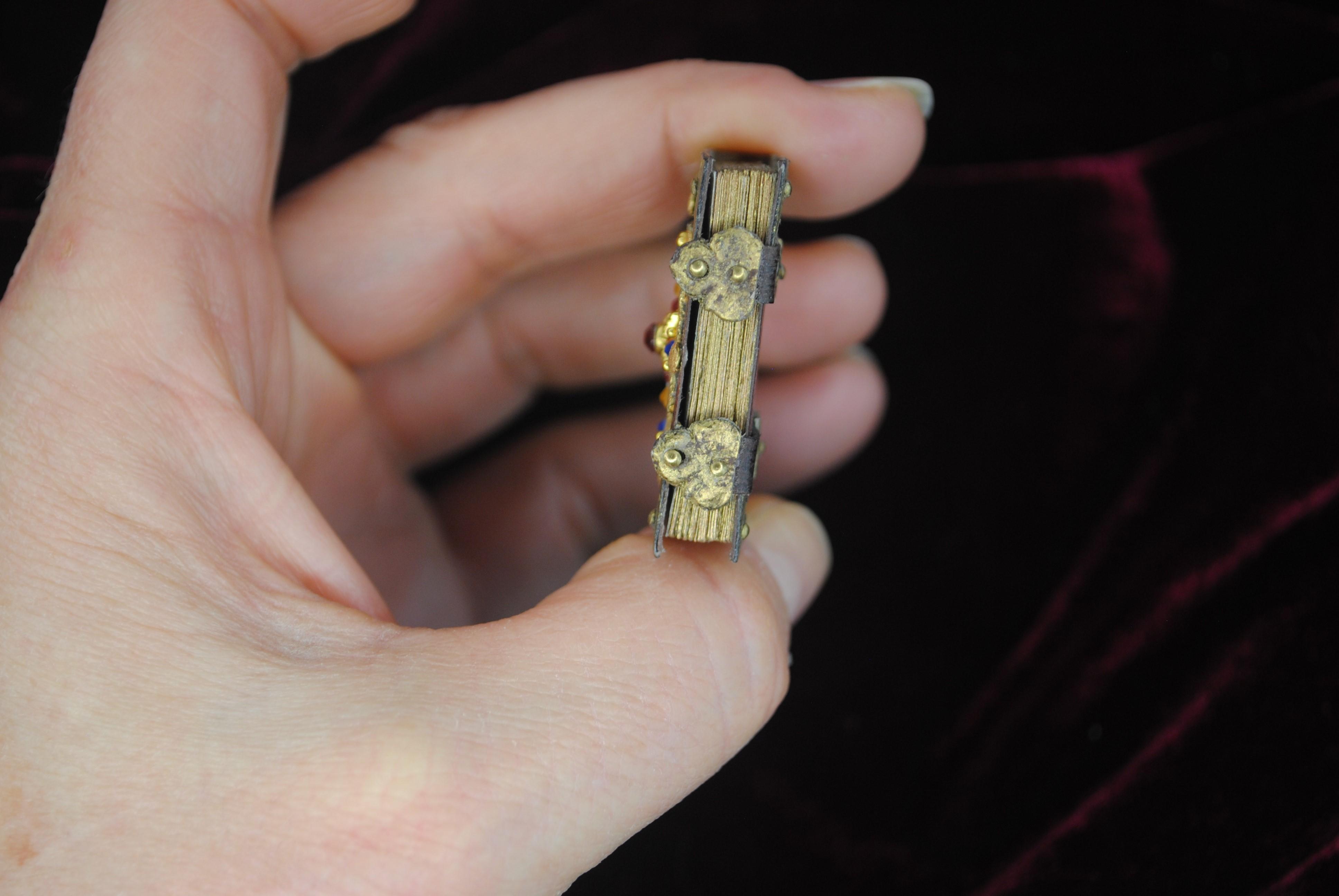 These miniature books truly look and feel like Medieval manuscripts... completely functional with rounded spines, illuminated pages, working clasps and chains! 💗