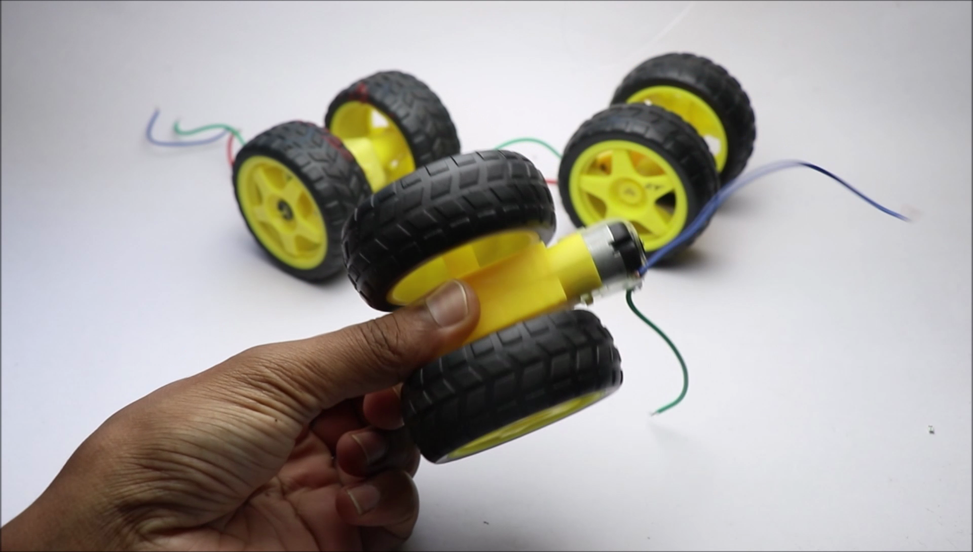 Connect the wheels to the shaft of the BO motor, There is no need for any screws since it is joined by using press fit mechanisms.