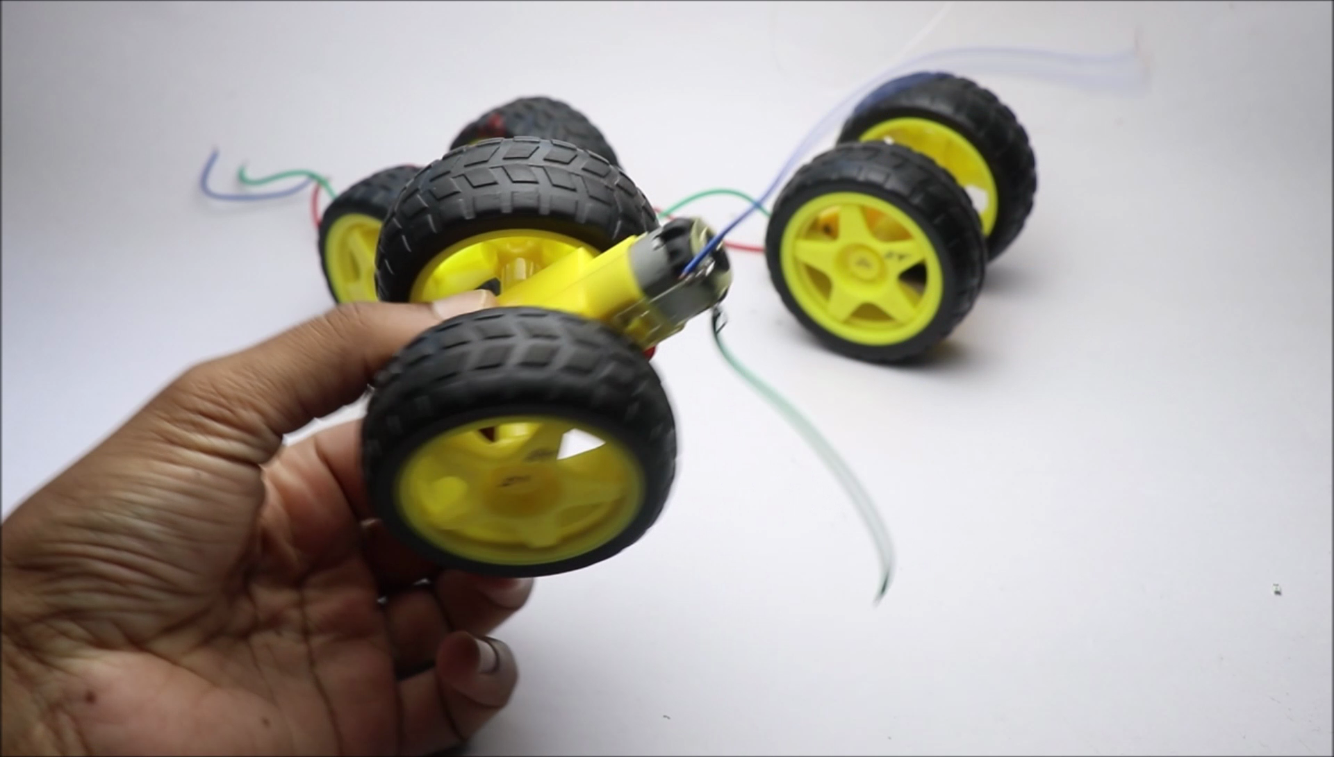 First I soldered wires to the BO motor terminals, and I tested each motor individually to check the direction of rotation.