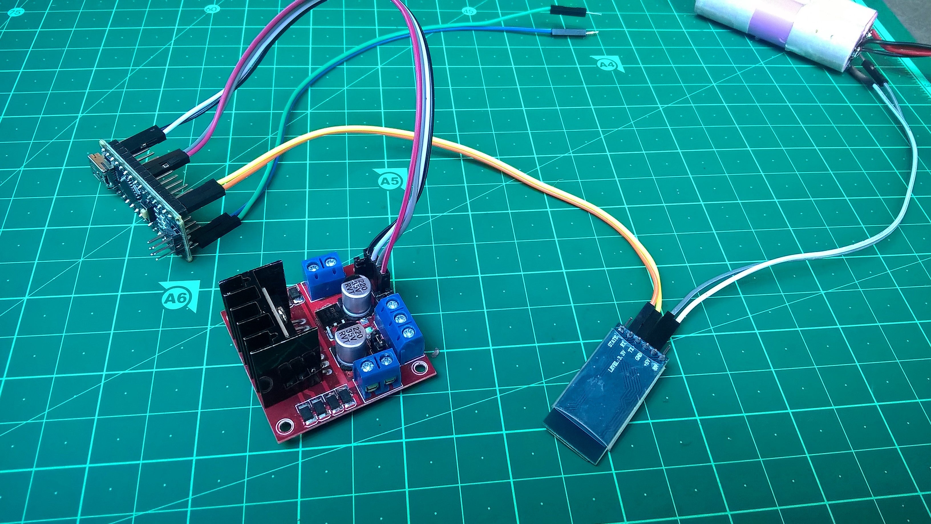 Now solder battery's positive wire to switch, then connect it to the motor driver and connect negative wire of the battery to GND of the motor driver.