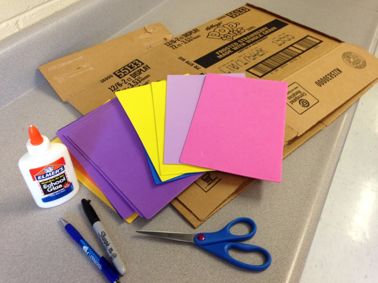 In order to build your 3D Topo Map you will need the supplies - scissors, glue, a pen or marker to trace your elevations AND the medium that you will use - I used foam paper to make mine but you can use regular paper spaced out with foam shapes, cardboard, card stock, etc. Anything that will be able to show shape and elevation!