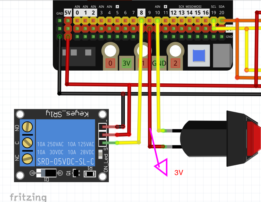 The button, on the other hand, works at 3v and we will use the Pin (10) (or your preference) to activate or deactivate programmed times.