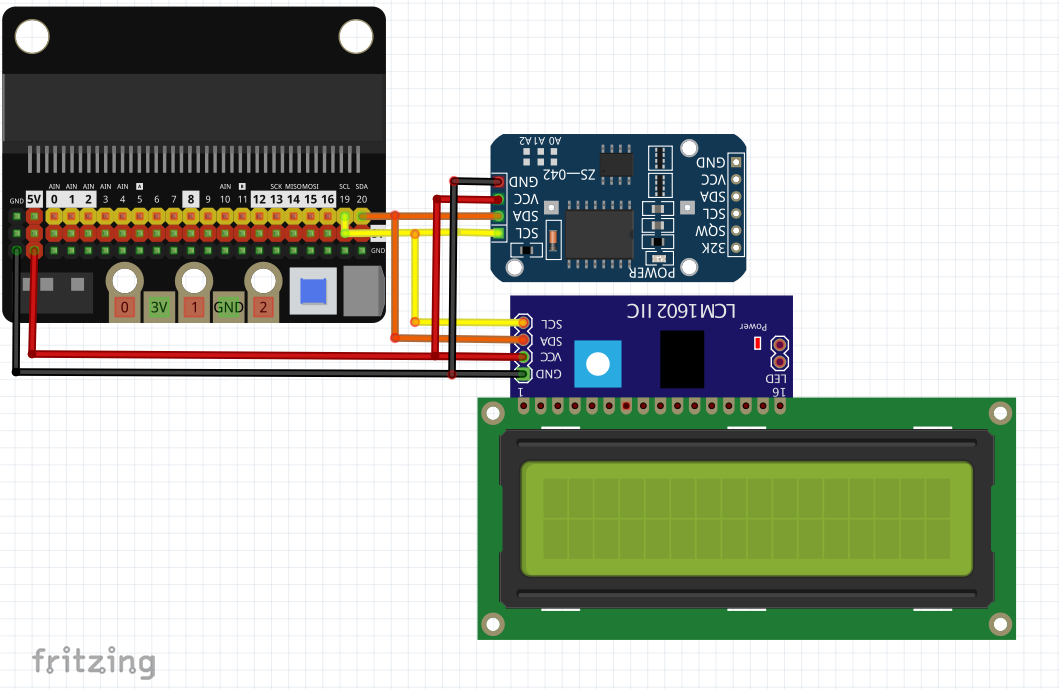 Connect the SCL (clock) pin of the LCD1602 module to the SCL Pin(19) of the micro:bit.