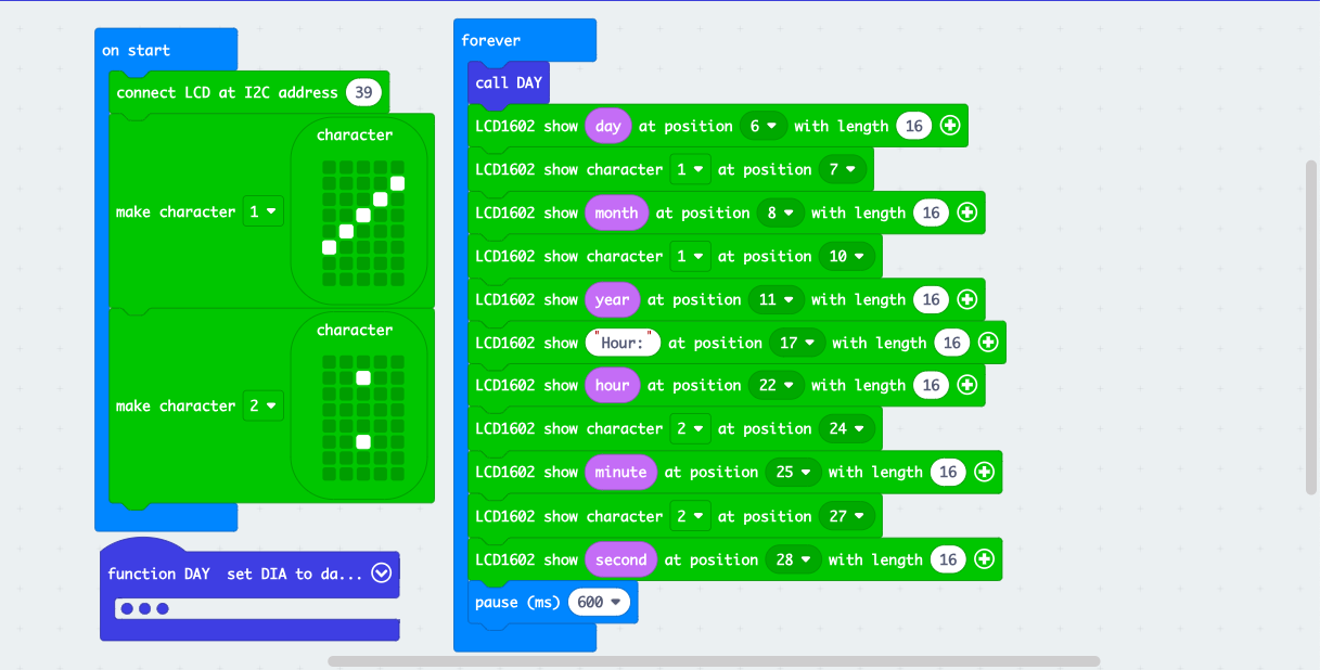 then in the seed block choose "LCD1602SHOW" to show letters, variables or text at the coordinate you want on the LCD.