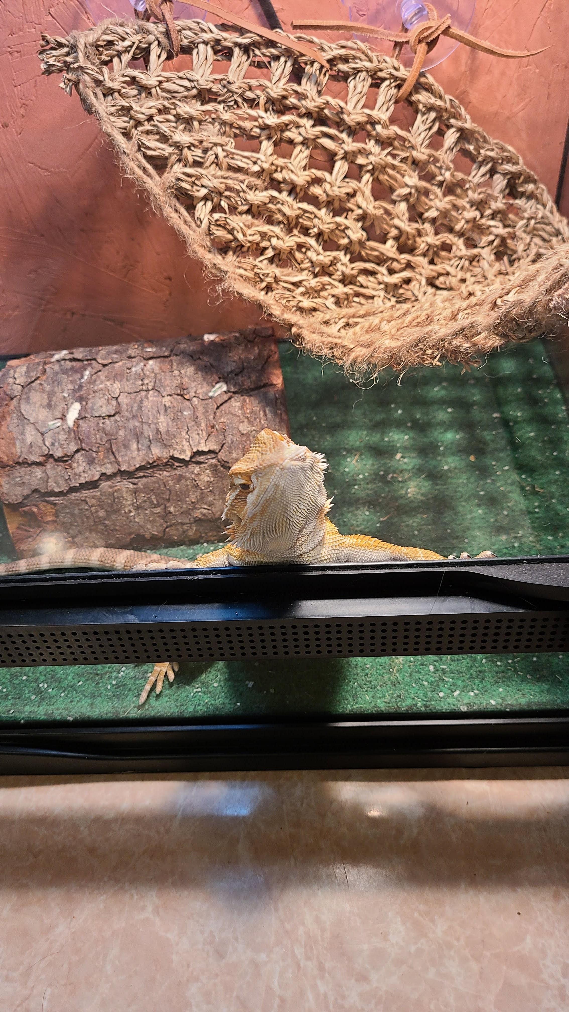 Bearded dragons love the climb on things and hide, so it's important they have things that will let them do that. Put things like a large cave or a log inside of the tank. Hammocks are also a good option.