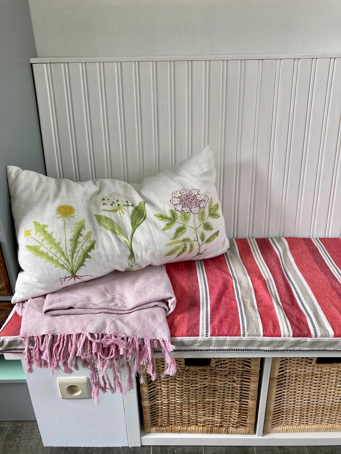 After squeezing the bench in between two cabinet it was time to take some pinteresty pictures of it,