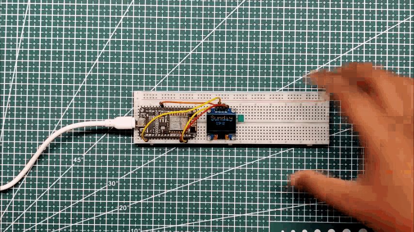 After this, we add the main code into the NodeMCU and you'll see Time and Day displaying on the OLED Screen.