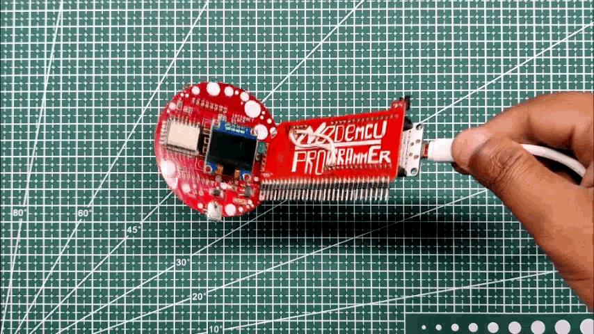 - At last, we place the SSD1306 Display on the header pin connector, and the Board is now completed.