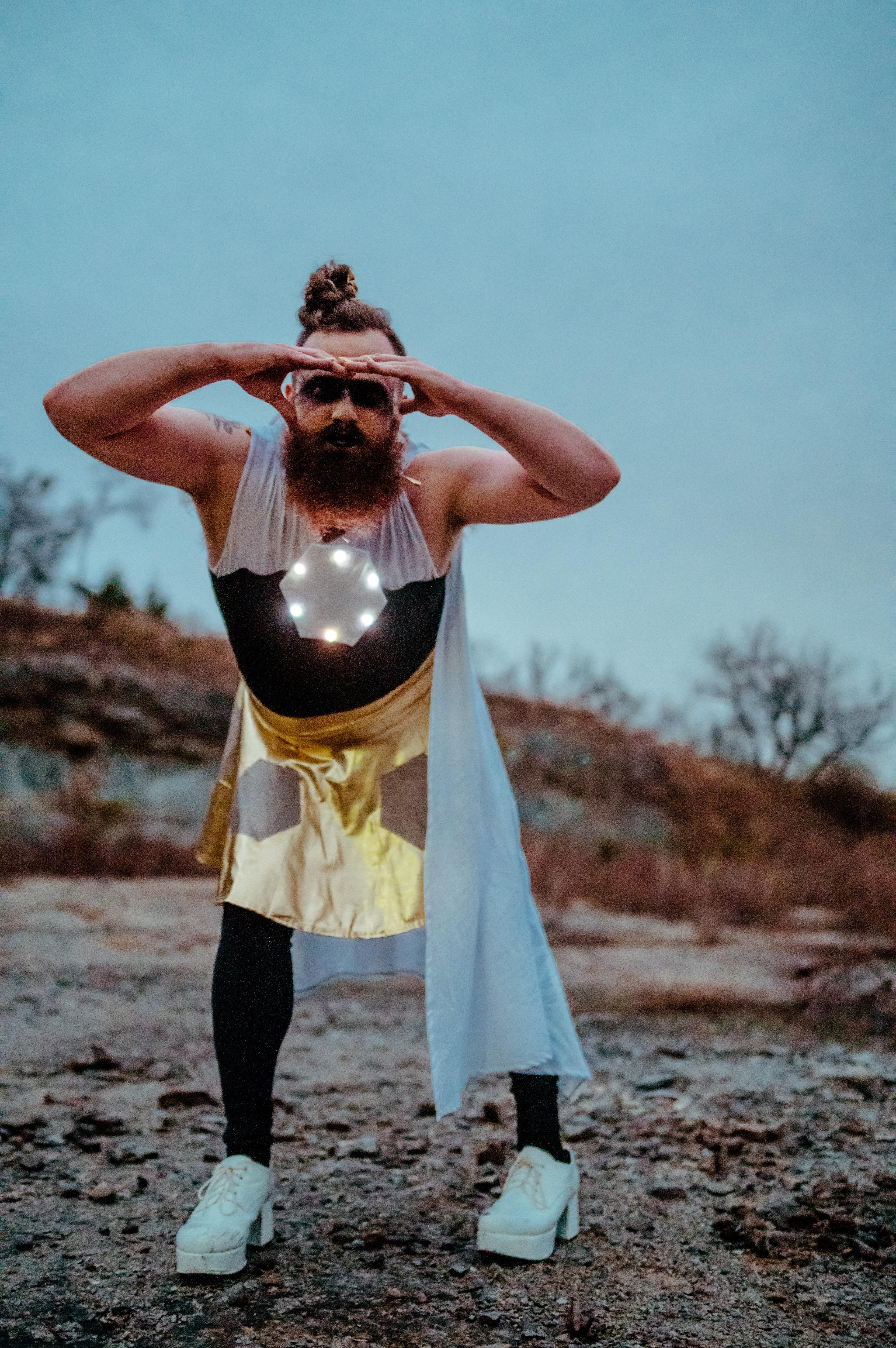 I came to the idea for this costume after getting some conductive fabric sensors and staring at them for many months without doing anything. One evening after looking at the latest captures from the JWST, it clicked that I too could be in search of exoplanets, and my mission to make an interactive JWST costume had begun.