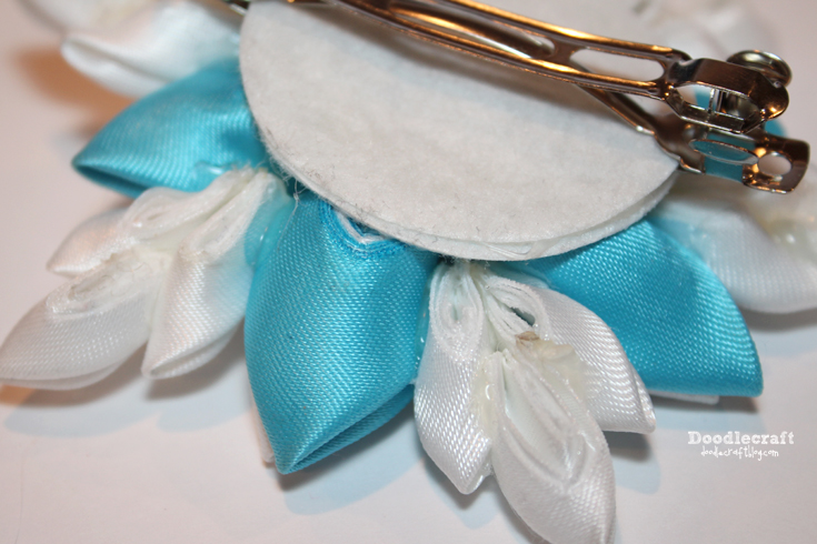 Then either sew, or just hot glue all the pieces together to form a 6 petal flower.