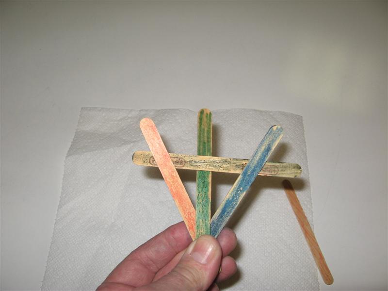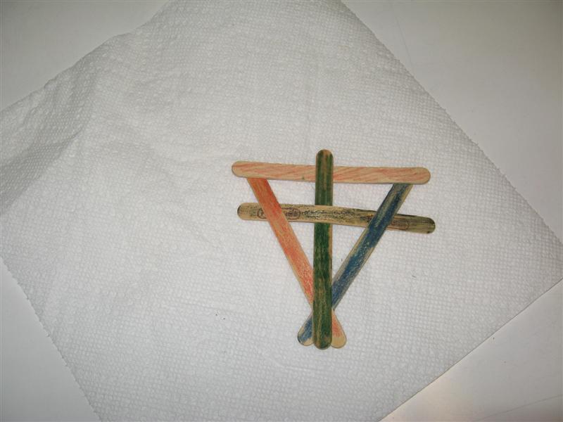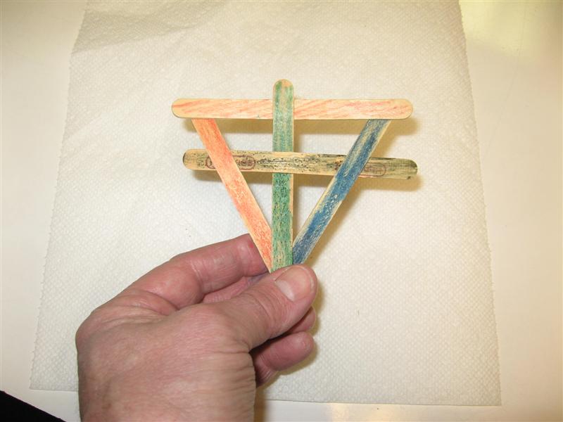 It brought me back to my childhood where I made many of these, I stated to think back about the toys my father taught me to make on of which was a triangle (or square if you were better) made of Popsicle sticks. When thrown it worked like a Frisbee but when it hit anything it sprung apart in a tiny explosion. You could paint them so that it was more colorful on impact giving the illusion of the explosion.