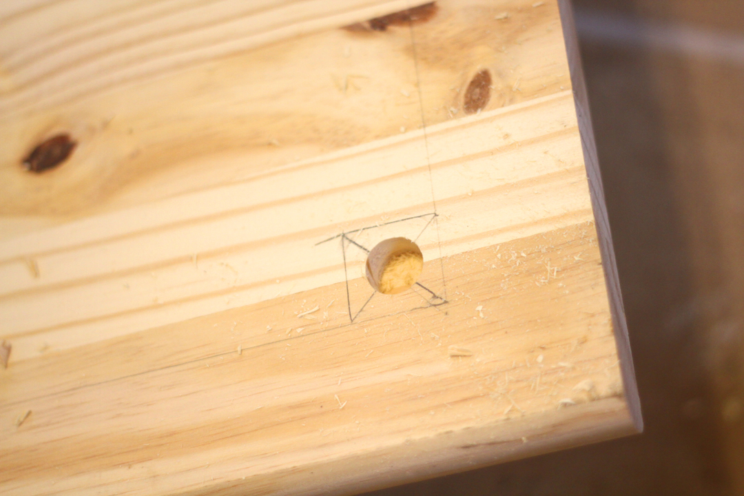 I measured in two inches on all sides and drew a line around to mark where the support boards would attach.