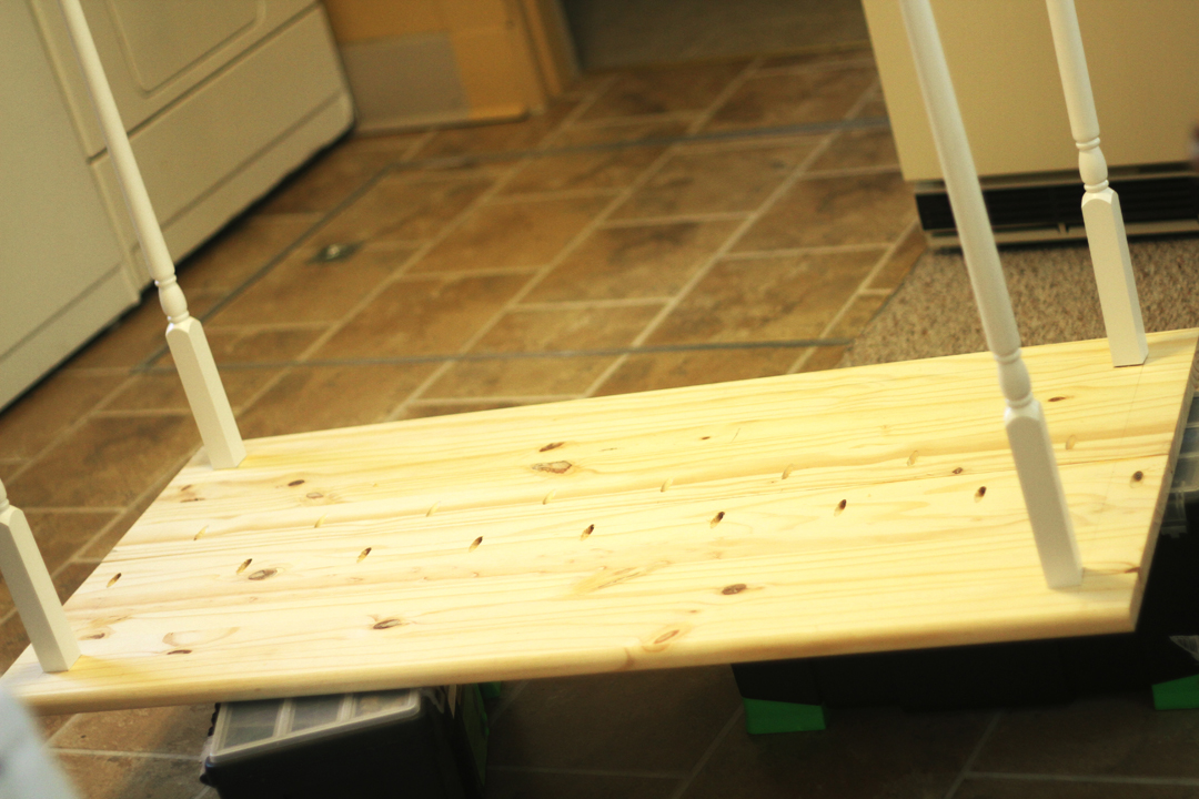 Except for the shelf and tabletop I painted the wood with primer and a semigloss white paint. Two coats over the primer, but one probably would have been good enough.