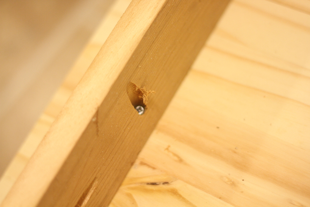 For the lower shelf I used one 8 feet long 1x12. I cut it in half and glued and screwed it together the same as the tabletop. The edge of it was rounded over with a router, but a sander could have been used for this too. The support boards were attached to the legs with two pocket holed screws on each end. The shelf was then screwed to the support boards with screws in pocket holes.