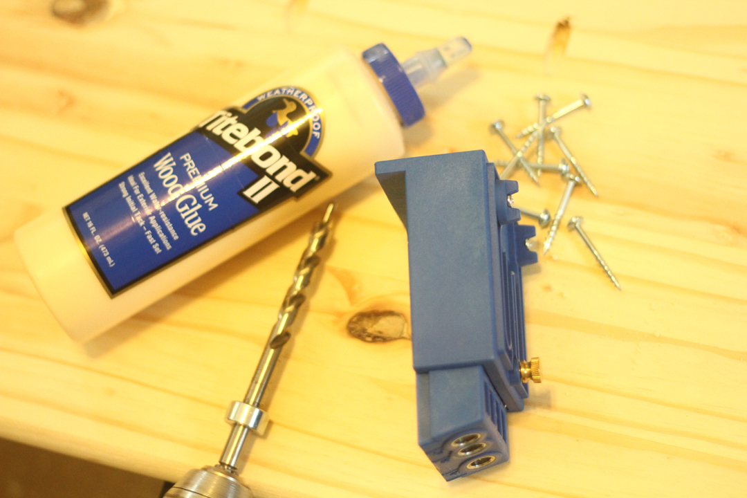 A pocket hole jig (handy things; I have a Kreg brand one, but there are a variety of ones out there that cost far less--shop around)