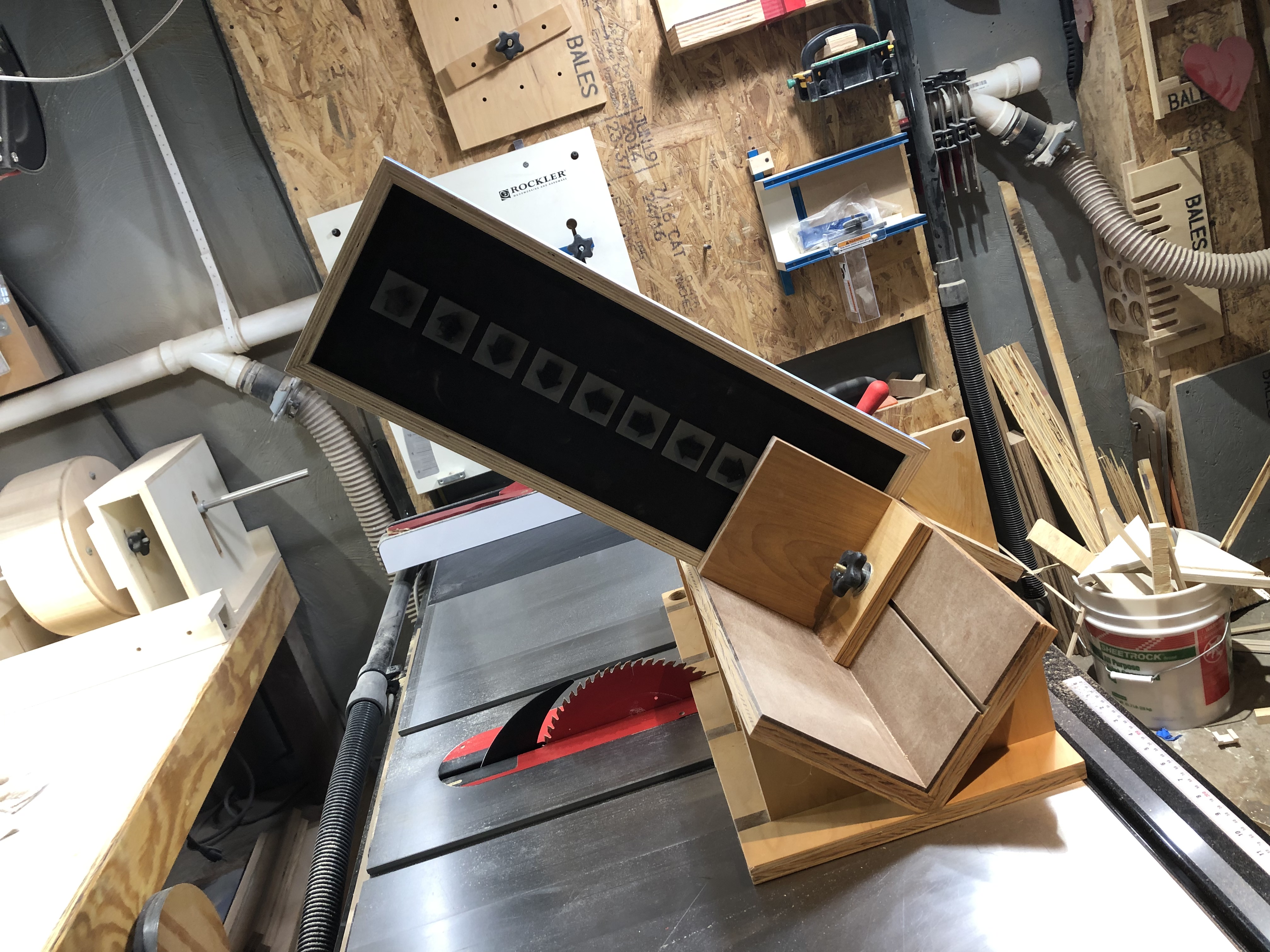 The finished board gets framed with the 1 1/2" grooved, plywood strips and it's a pretty basic process. I used a crosscut sled from Rockler, which has an adjustable fence for different angles. It has a build in ruler, which is pretty accurate, but I always double check and dial it in with a speed square.