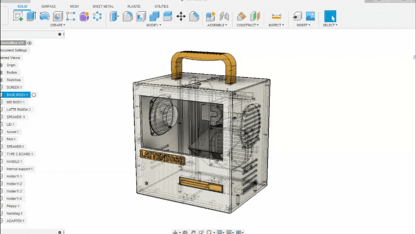 Because it's a Big Project to build and 3D Print, I made the model in 3 Parts, the Base body or Front Cover, the Middle part, and the bottom lid.