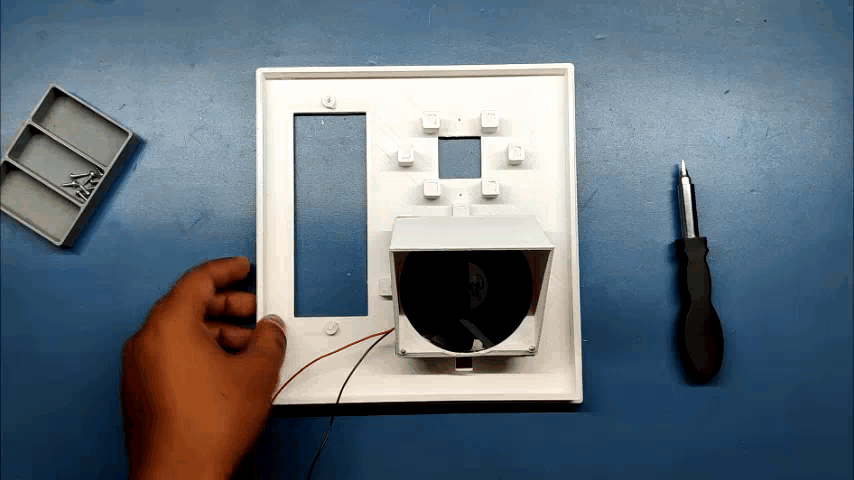 - We start the Lid assembly by first adding DC Fan with the air vent by using four M3 Long Screws.