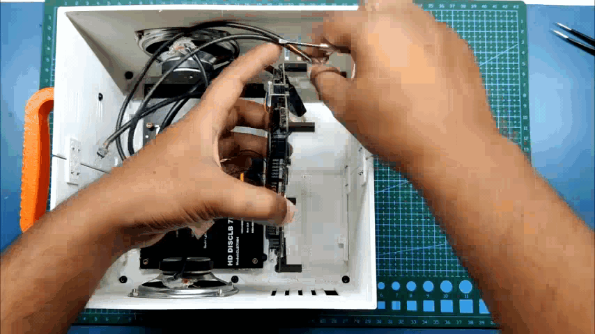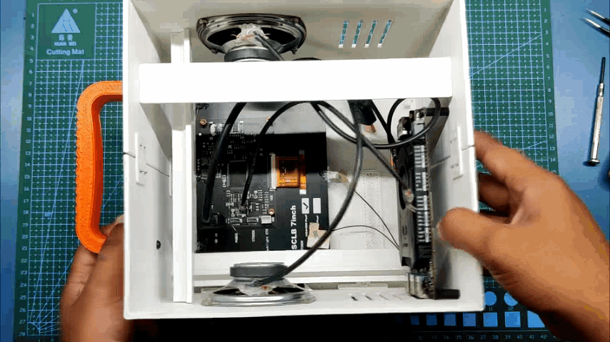 Until now, we have combined the front and middle body to prepare the basic structure of the computer, we have also added a Display and speakers on the front and middle body.