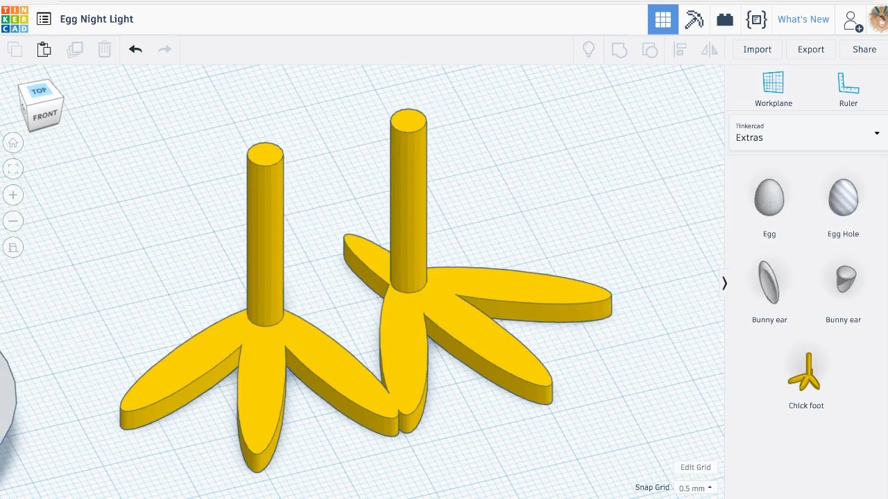 Now that you have your parts modeled, it's time to start exporting them as STL files. These STL files will be used to generate your 3D prints! There's one more thing we need to do to the legs to prep them for successful 3D printing, so we'll start by exporting the egg parts.