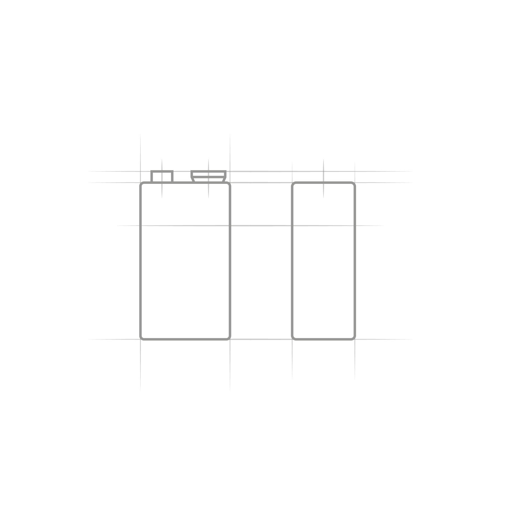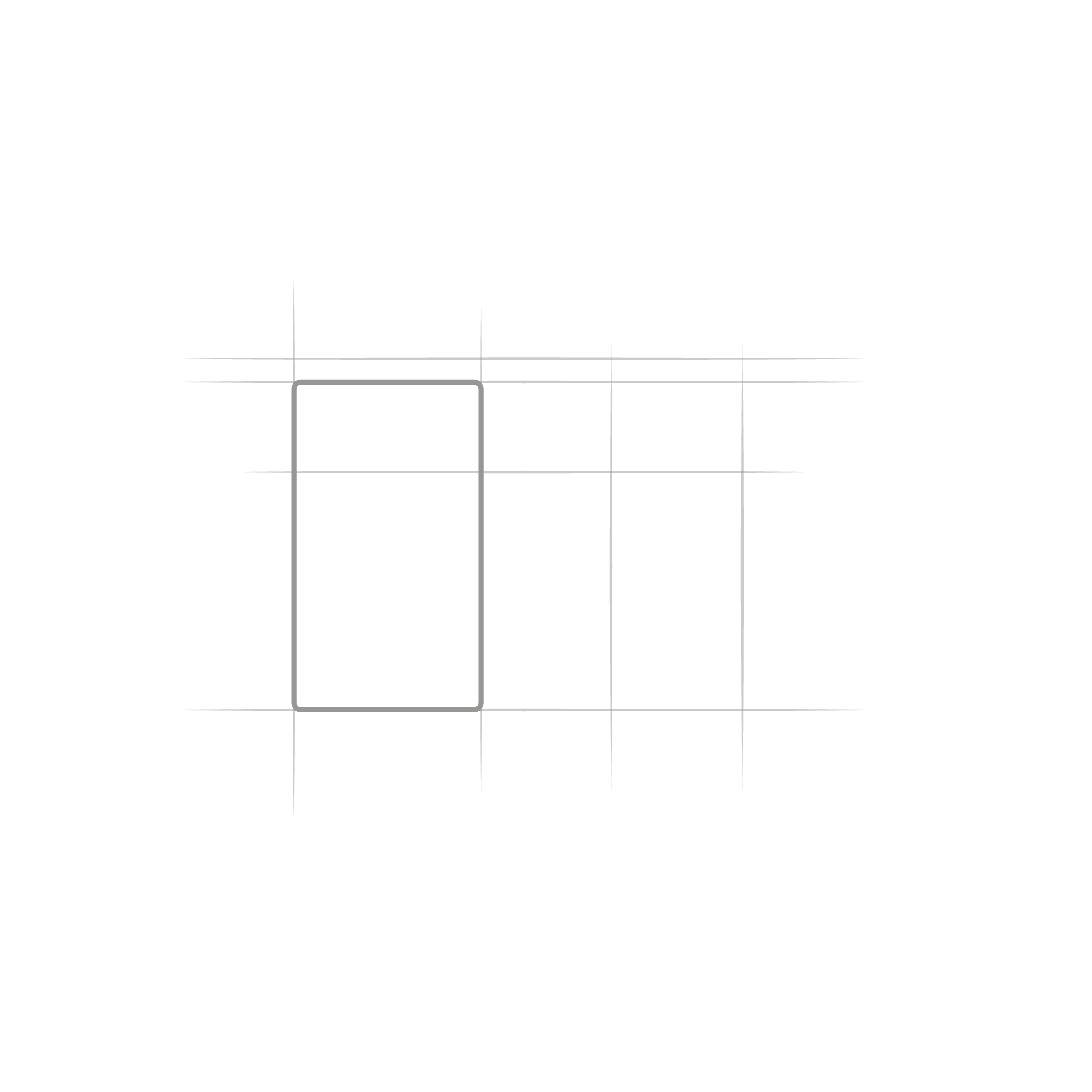 Before going any further with construction lines, draw the primary shape of the object from one viewing angle. In the case of the battery, that's the rectangular profile of the front.