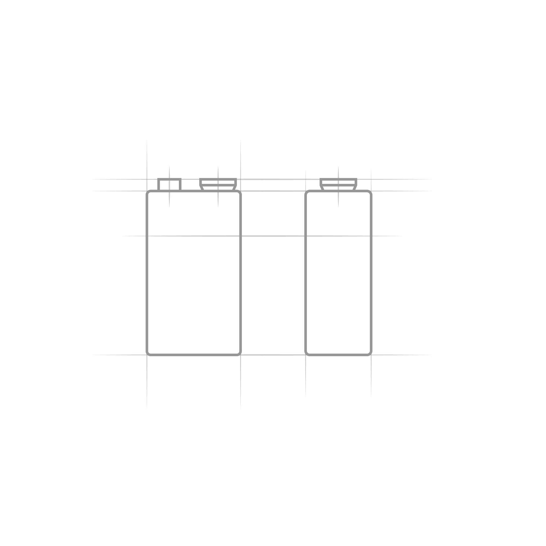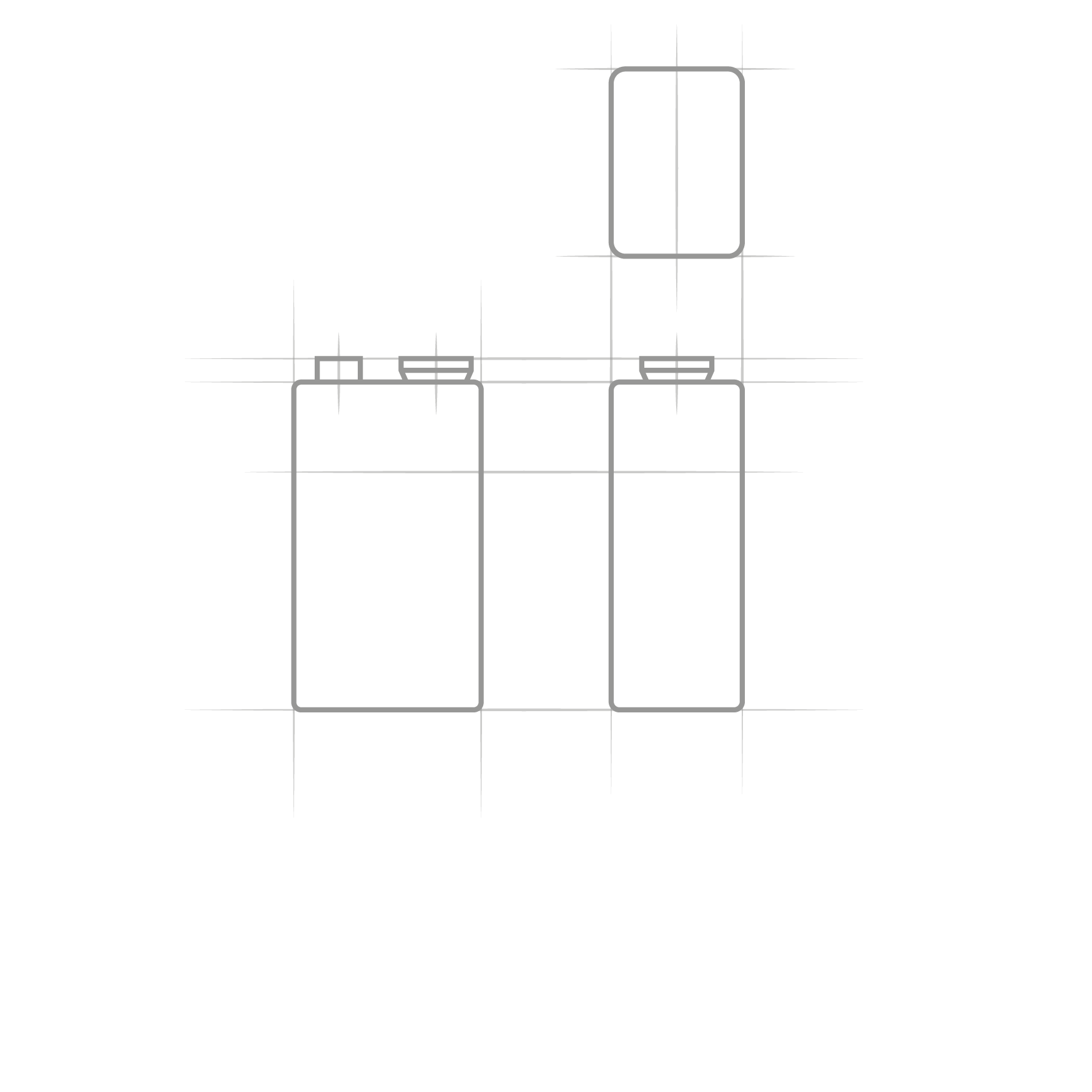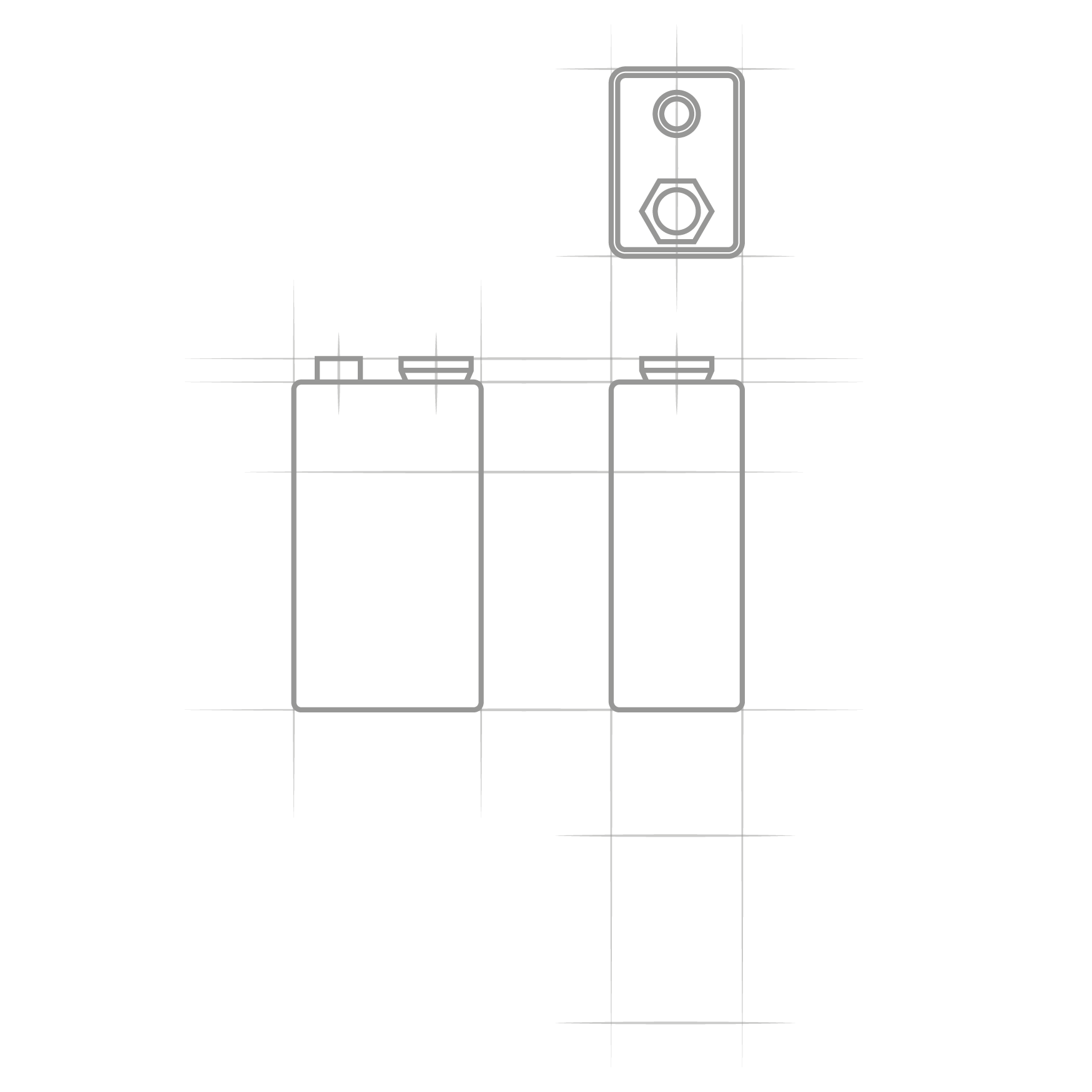 Next, add whatever other features can be seen from that point of view. For the battery, that would be the terminals on top. A couple of center lines will help keep the location of the terminals correct (these represent the centers of the terminals, not the rectangle).