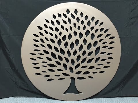 I got the inspiration for this while at a craft store. I found the mini-tree I show in the beginning of the video in a three pack and really liked it the first thing that popped in to my mind was this needs to be bigger. So I scanned it and then enlarged it. I printed out the sheets and taped them together to make the template. The great thing about this project is that it is an organic shape which lends itself to irregularity. In other words it doesn’t have to be perfect you don’t have to cut exactly on the lines. Any imperfections only add to the final piece. I even changed the shape of the leaves from rounded ends to pointed ends because they are easier to cut out with a jigsaw. So if you have never used a jigsaw before then this is a good beginner project any mistakes can be hidden by the organic shape of the leaves and the tree. The only time you have to follow the line is when you cut the circle or you could just make it a large square and forgo that part.