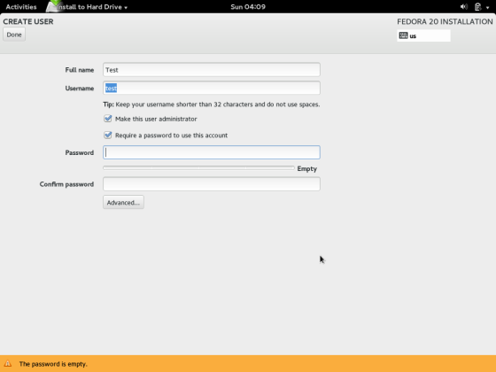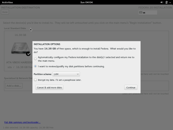 5. Fedora install