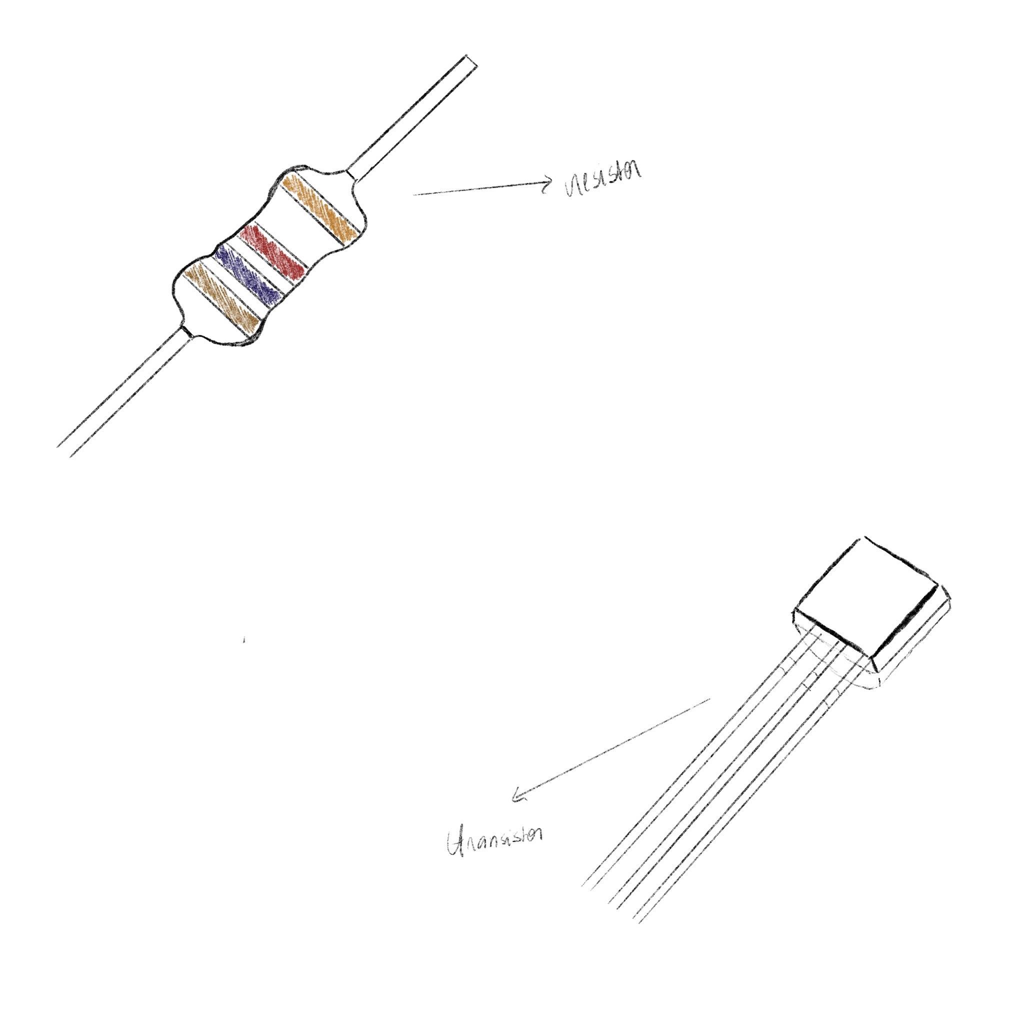 3.À frente de cada transistor, colocar dois resistores e soldá-los na placa.