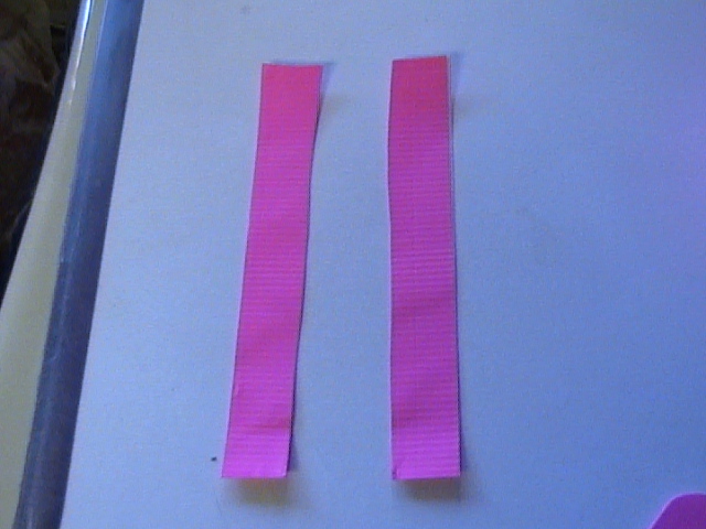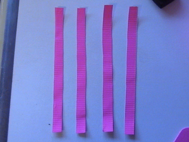 Then take the two strips, and cut them both hotdog style again to get four straps.