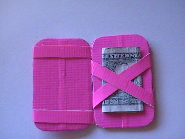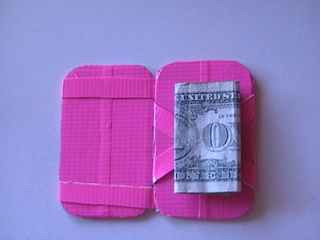 It's a magic wallet, made out of duct tape. The magic wallet has been done before, but I decided to make one, dirt cheap. This should last a while, and if it gets destroyed, just take another fifteen minutes and make another one.