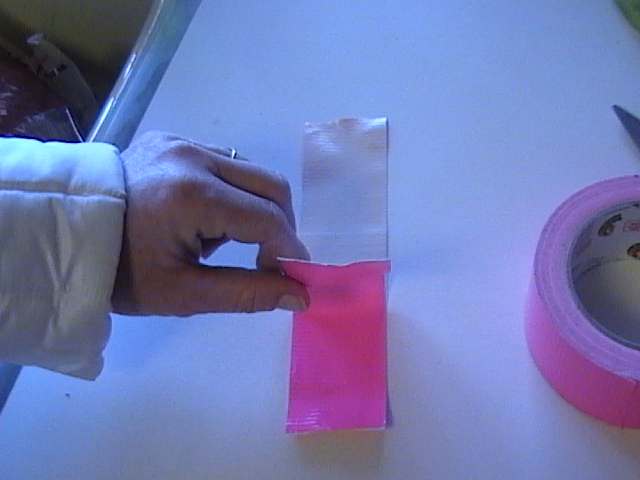 Put two pieces of foot long duct tape on top of each other to create one big strap.