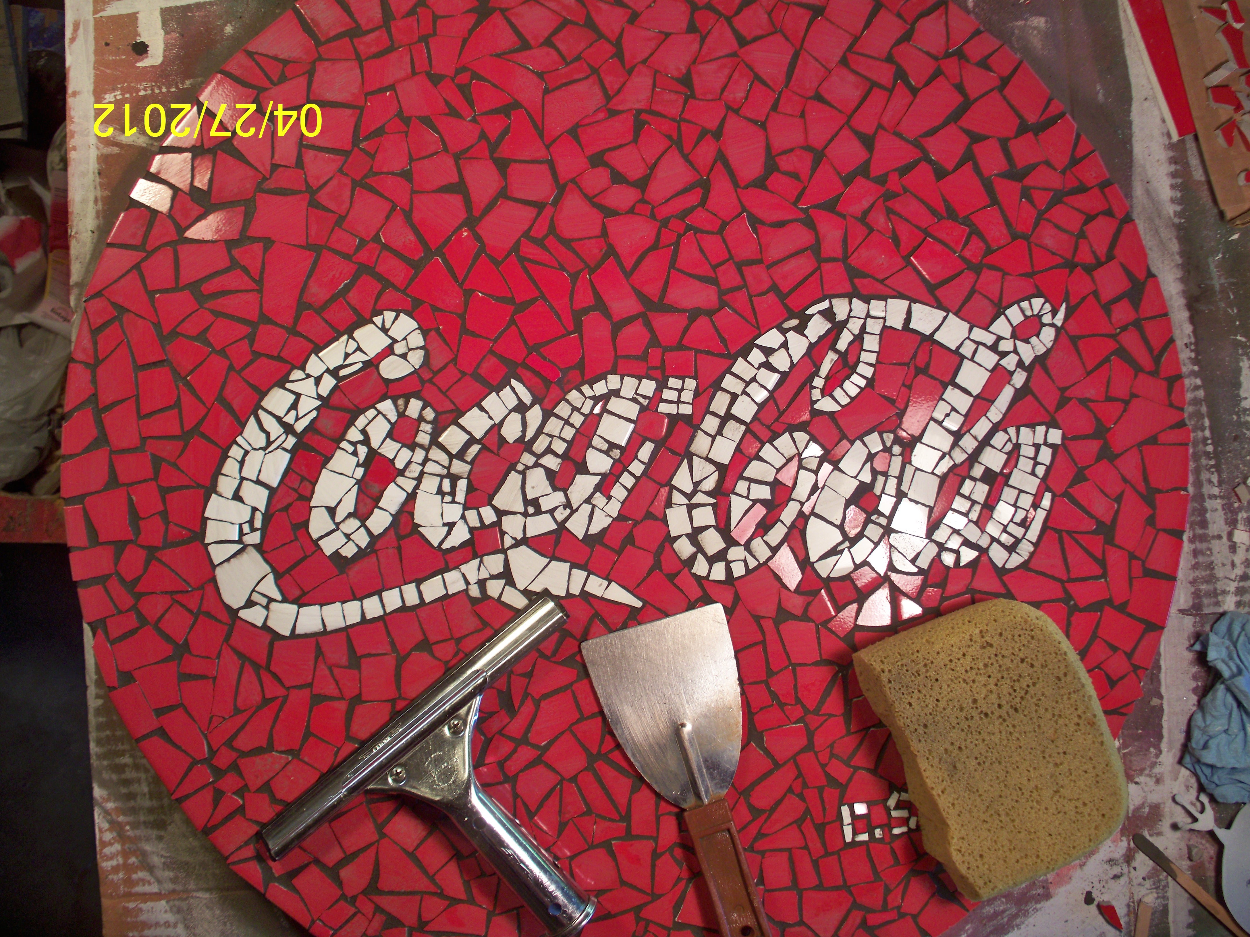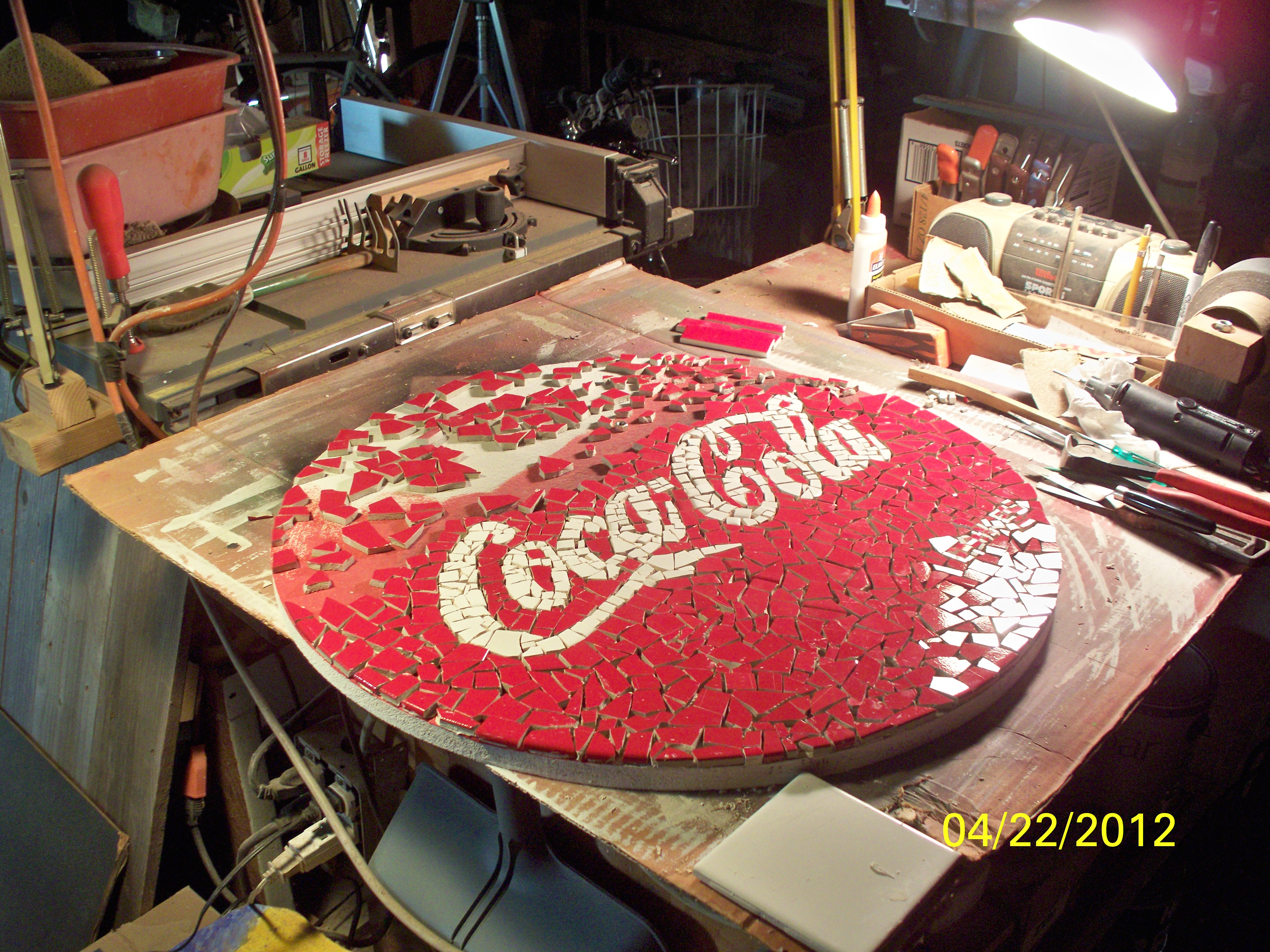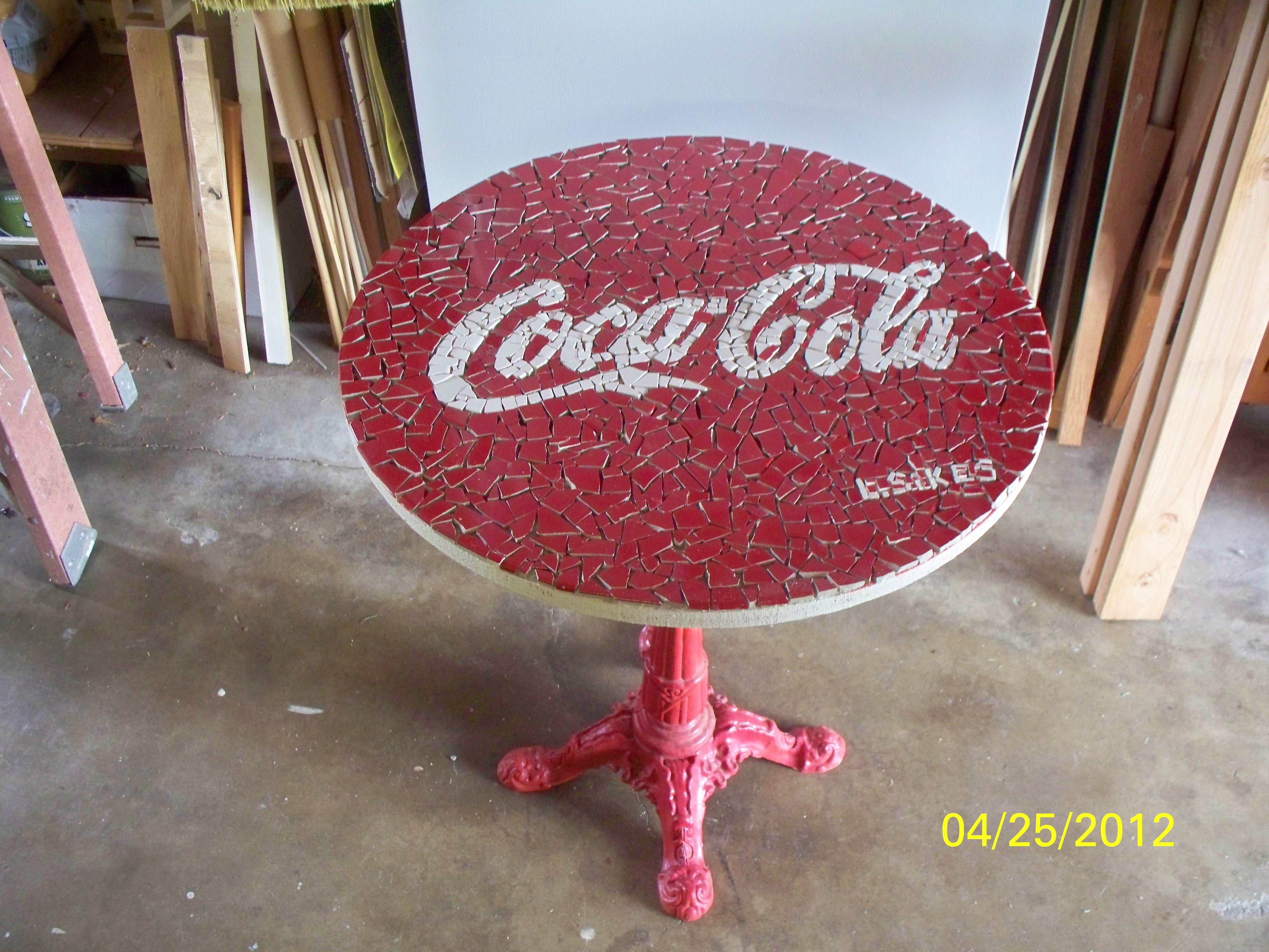 A while back, I found some 12 inch by 12 inch ceramic tile, bright red, at a thrift store. I purchased a few as I have done some mosaic work and like these tiles. My first thought of how to utilize them was " make a Coca-Cola mosaic". It took awhile, but I finally got around to making the mosaic table shown in this instructable. I made a little video of the process; access it here: http://youtu.be/-4uiVME9NLs