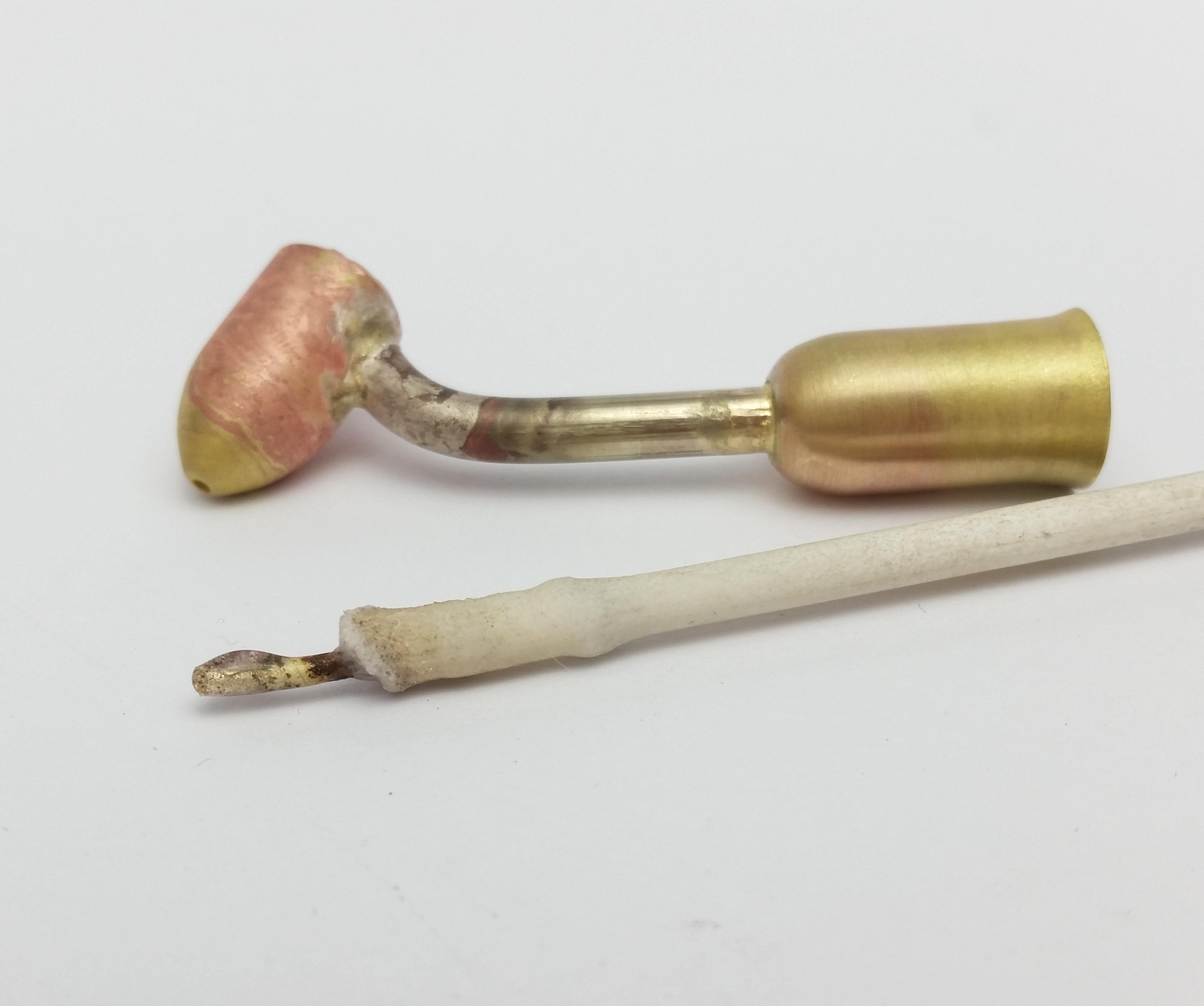 Be careful when soldering to concentrate the heat on the side of the painting cup where the handle will attach otherwise you risk melting the solder of the tip.