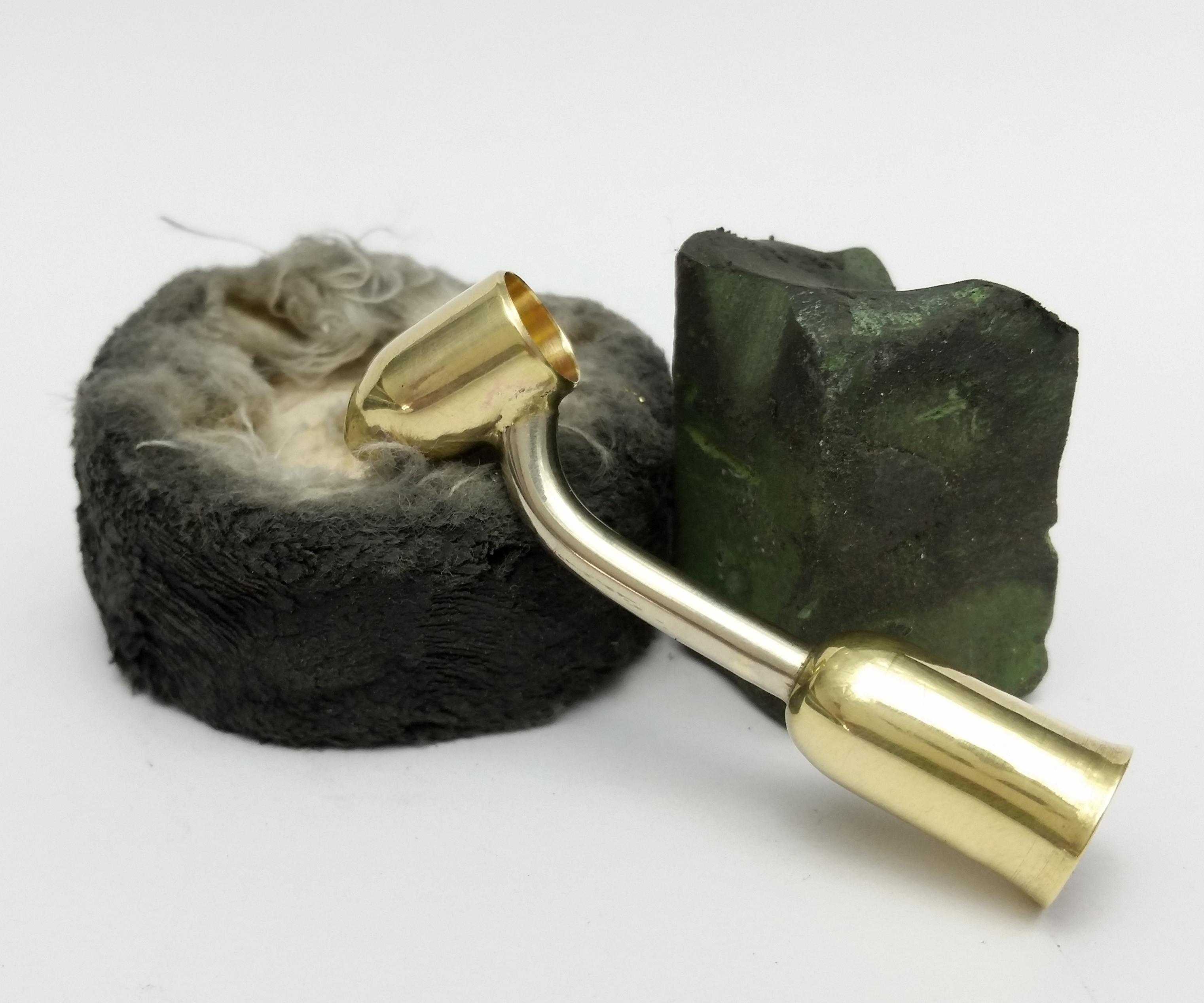 Next I moved over to the drill again this time with a cotton polishing wheel and a fine compounding block for brass to give our creation a beautiful shine.