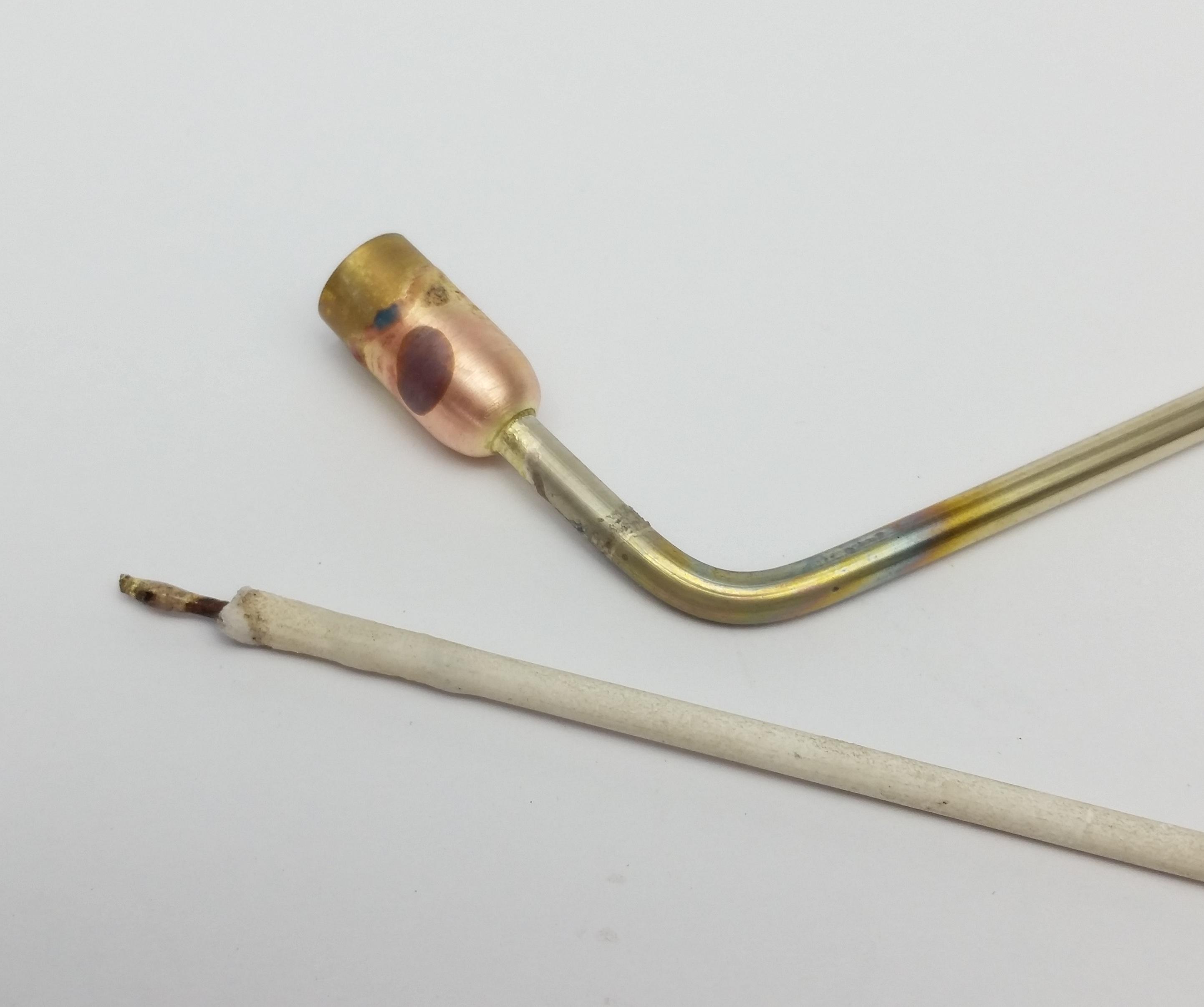 For the length I wanted I cut the rod just after the bend at a 45 degree angle as pictured, you want this angle so that the rod sits flat against the paint cup for soldering.