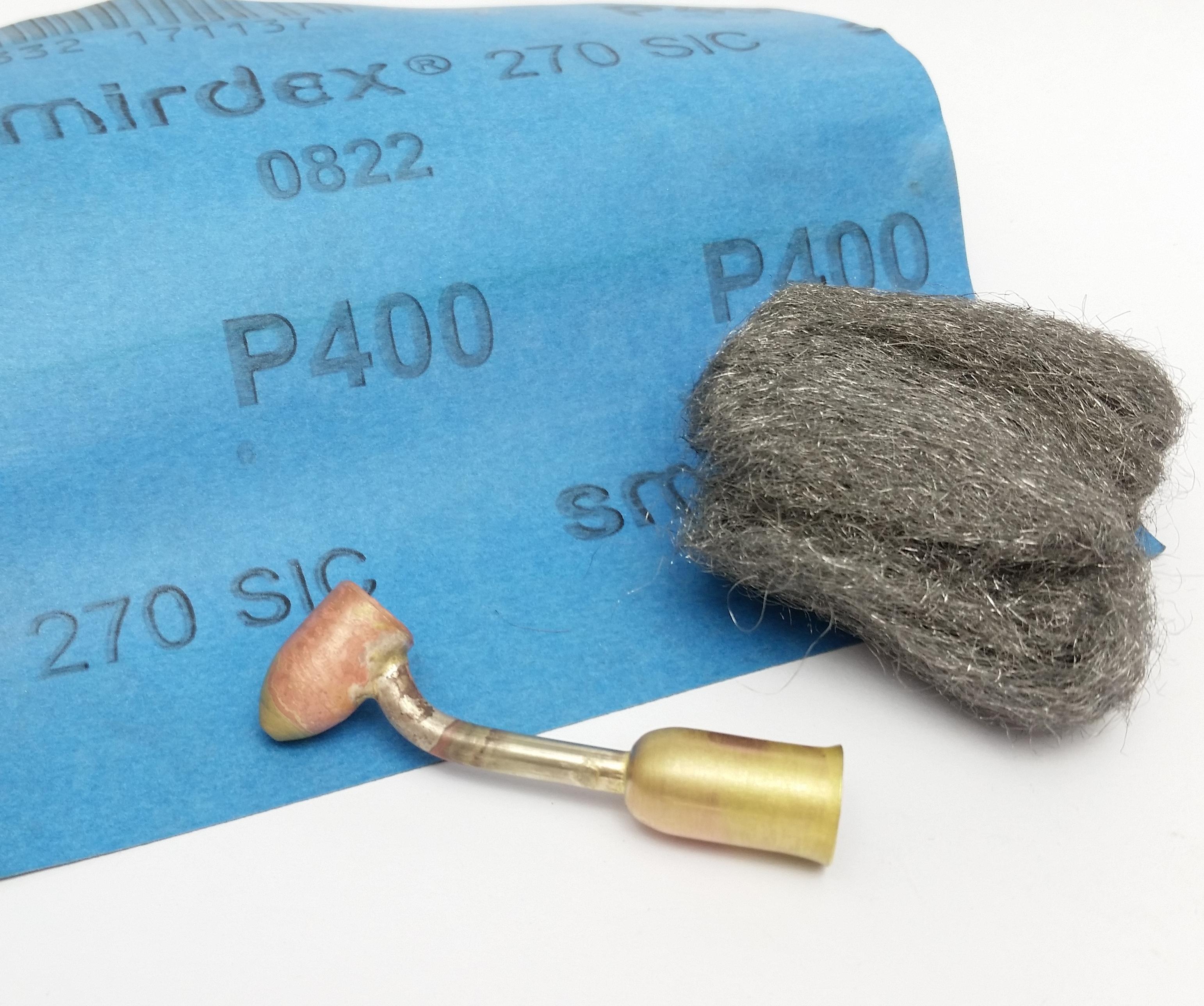 Using some 400 grit sanding paper I sanded away all of the staining and imperfections left after soldering before giving it a buff with some fine steel wool.