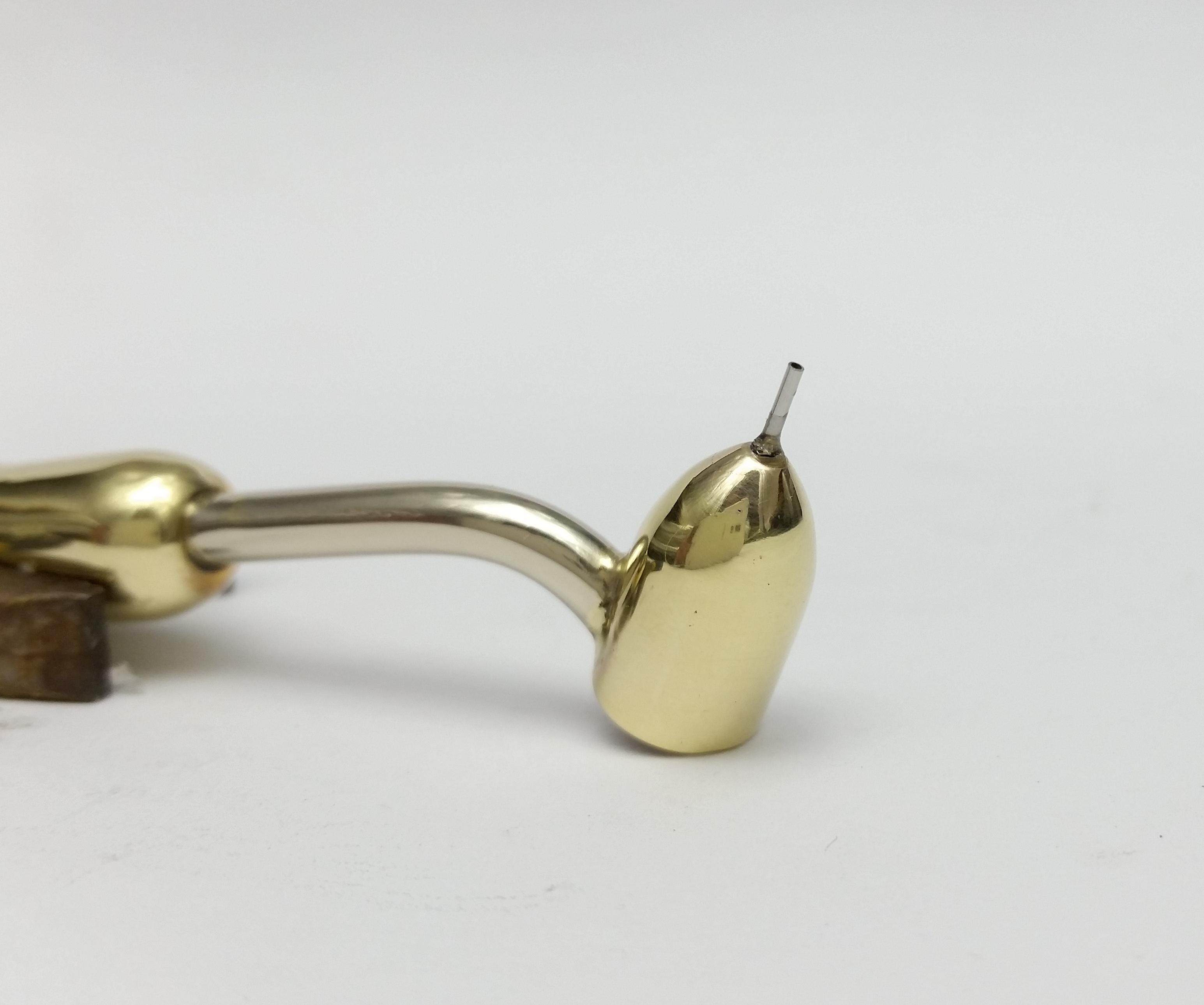 Using the propane torch heat up a spot on your 4mm brass rod and bend it about 80 degrees and leave to cool.