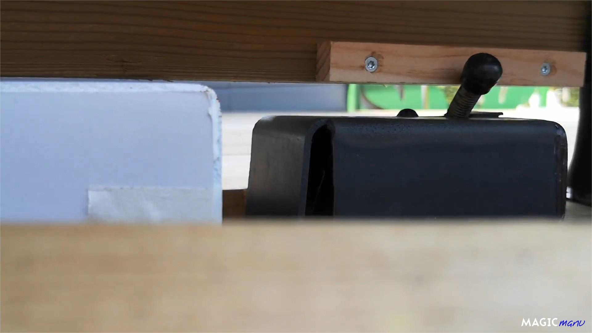 At first I had attached the rack to the side of the beam but I did not have enough travel to open the cover fully. So I cut the fixing pastes and I fixed the rack under the beam to gain 14 cms of travel (ie 2 beam widths).