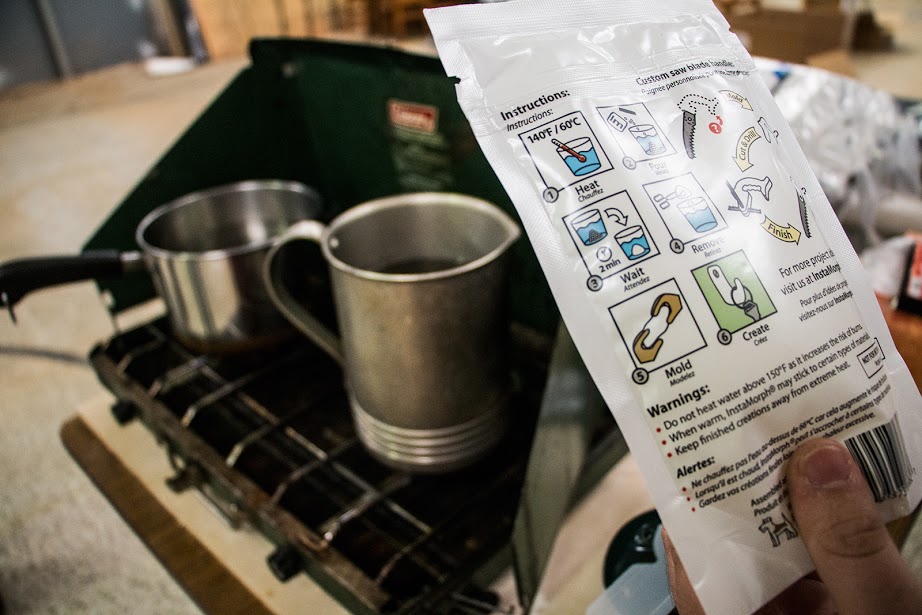 Follow the package instructions to heat the Instamorph to the desired temperature. Thought the packaging states that 160 degrees F. is the highest the Instamorph should be heated to, I found that 180 degrees worked slightly better as it made the plastic easier to work with.