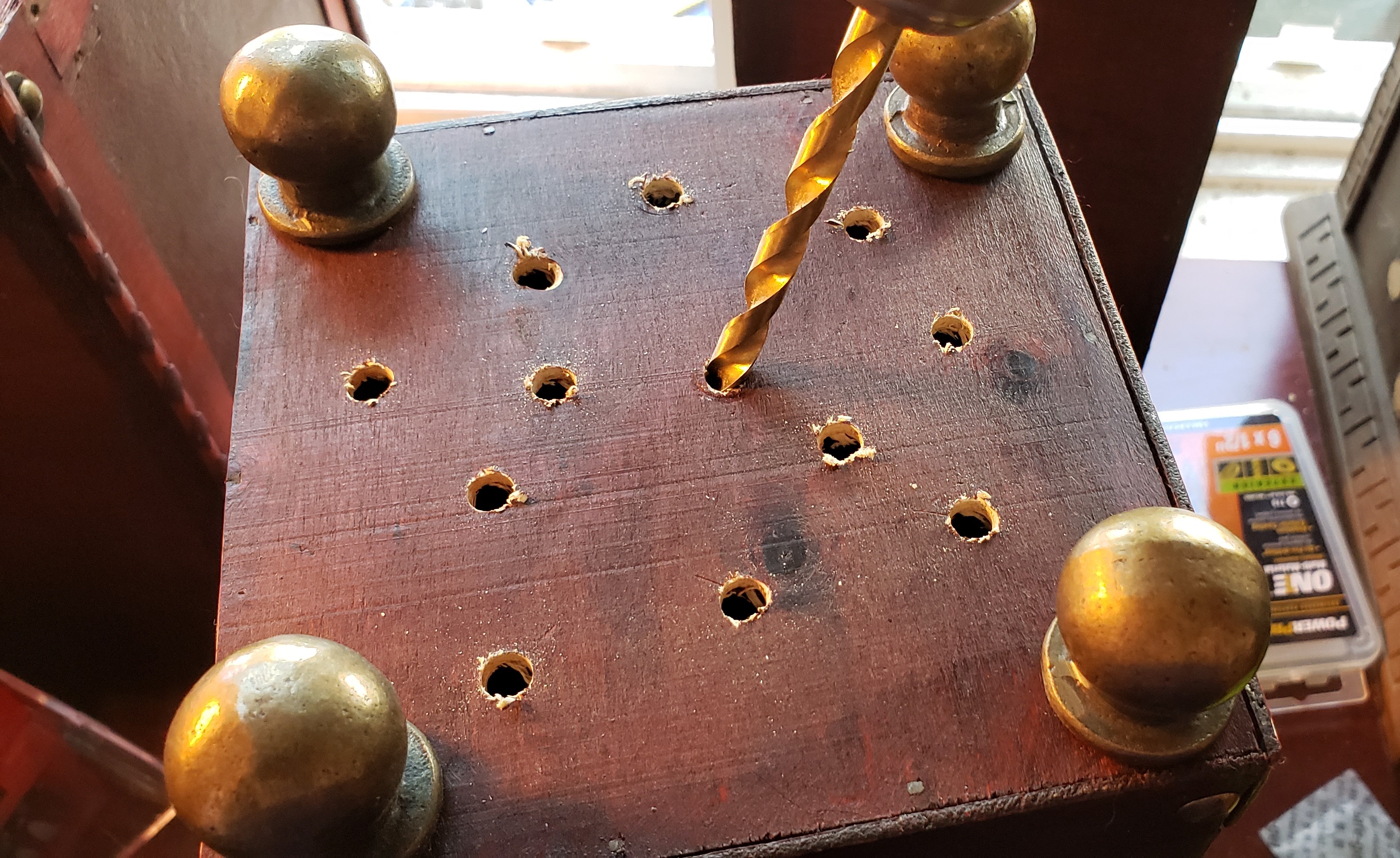 Once you have feet holes, install the feet. It's okay if the washer won't go on there, because it could be too big of a diameter to fit where you chose to drill the hole. Just use the nut to secure it if that happens. Don't worry about trimming the metal after.