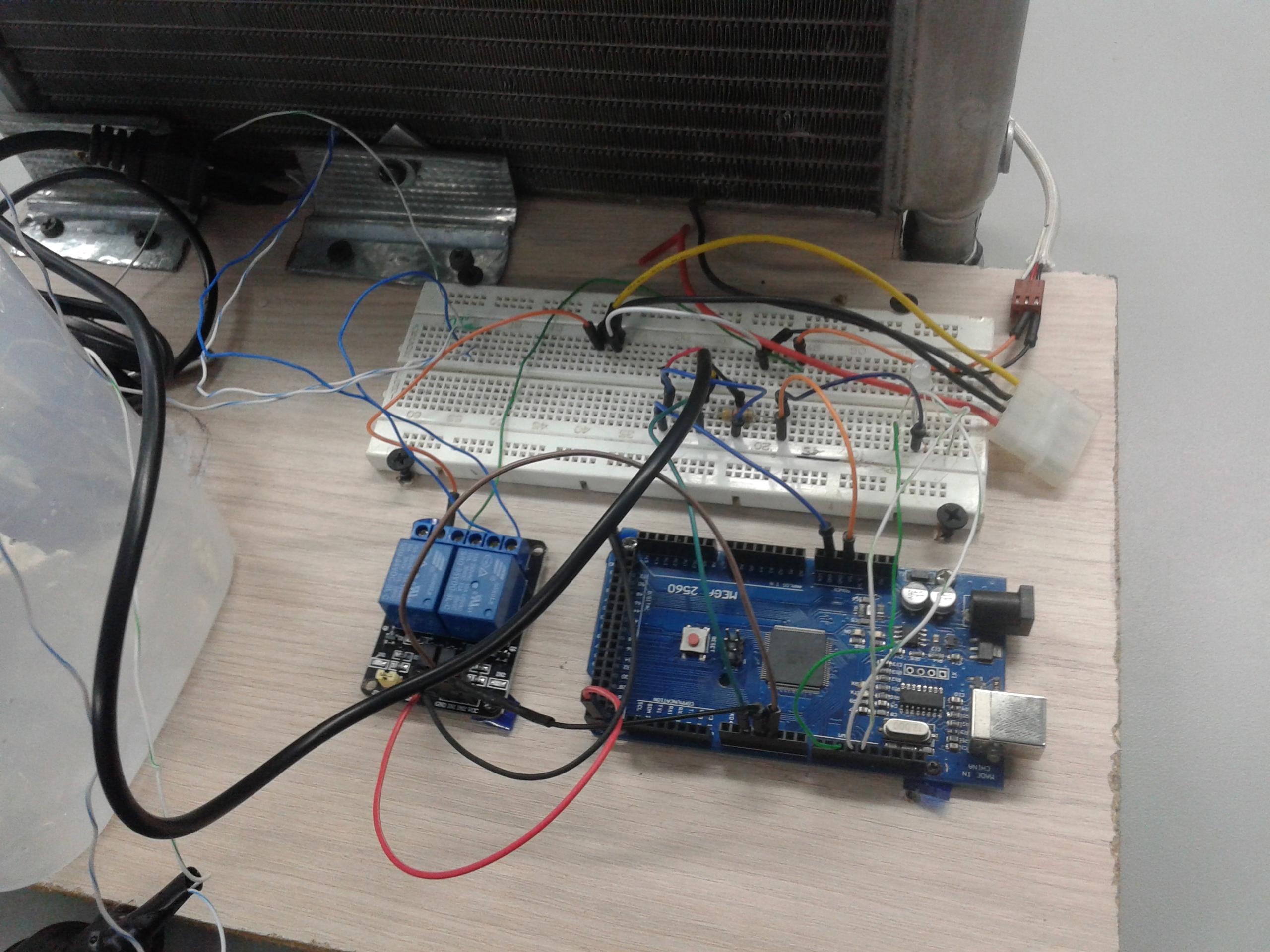 la programación consiste en leer los datos del sensor digital y cuando el deposito de agua alcance una temperatura determinada comience a funcionar la bomba y el ventilador(se activen los relés) controlando así la temperatura porque el radiador ayuda a disipar el calor producido en el deposito de agua. nota: si el flujo de aire es muy pobre no alcanzara a disipar el calor o si el calentamiento de la resistencia es muy elevado.