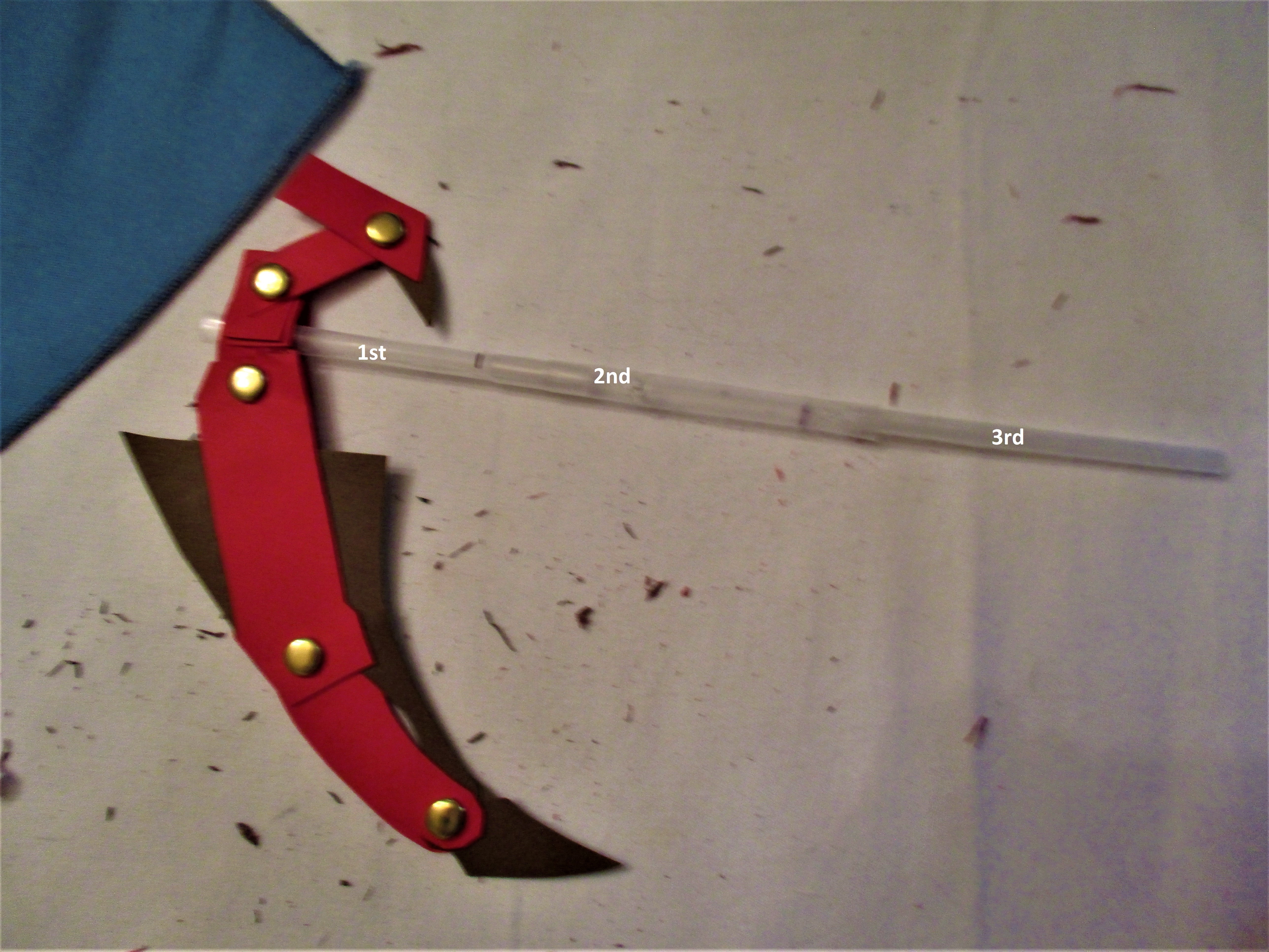 Once I was sure that’s where I liked it, I marked the maximum pull point on the 1st straw. That way I would know when to stop pulling when transforming the weapon from compact to scythe form.