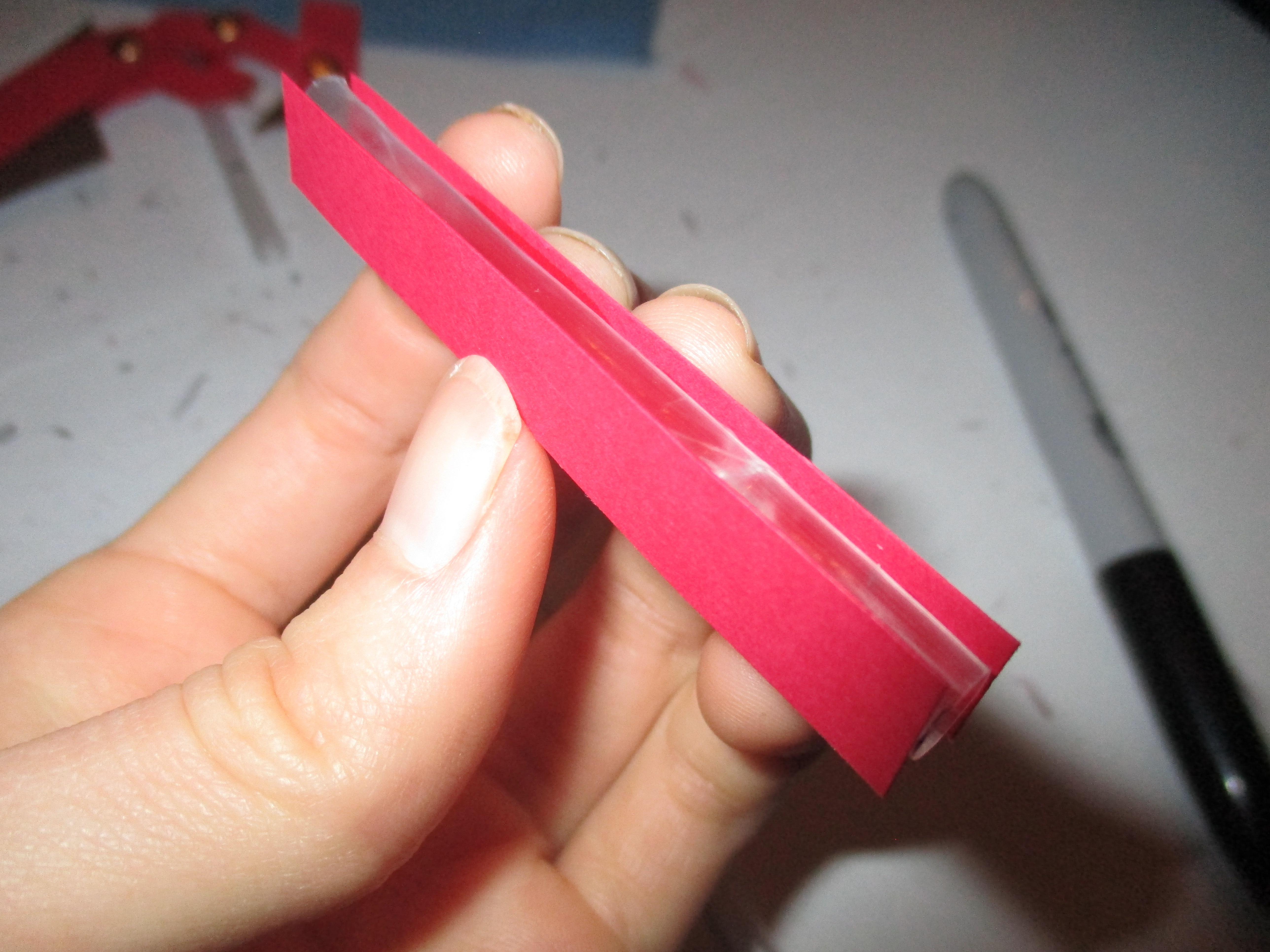For the rifle box itself, I cut out smaller portions of cardstock and made a rectangle around the 2nd straw. I secured the pieces with a bit of super glue. (Super glue is less messy than hot glue.)