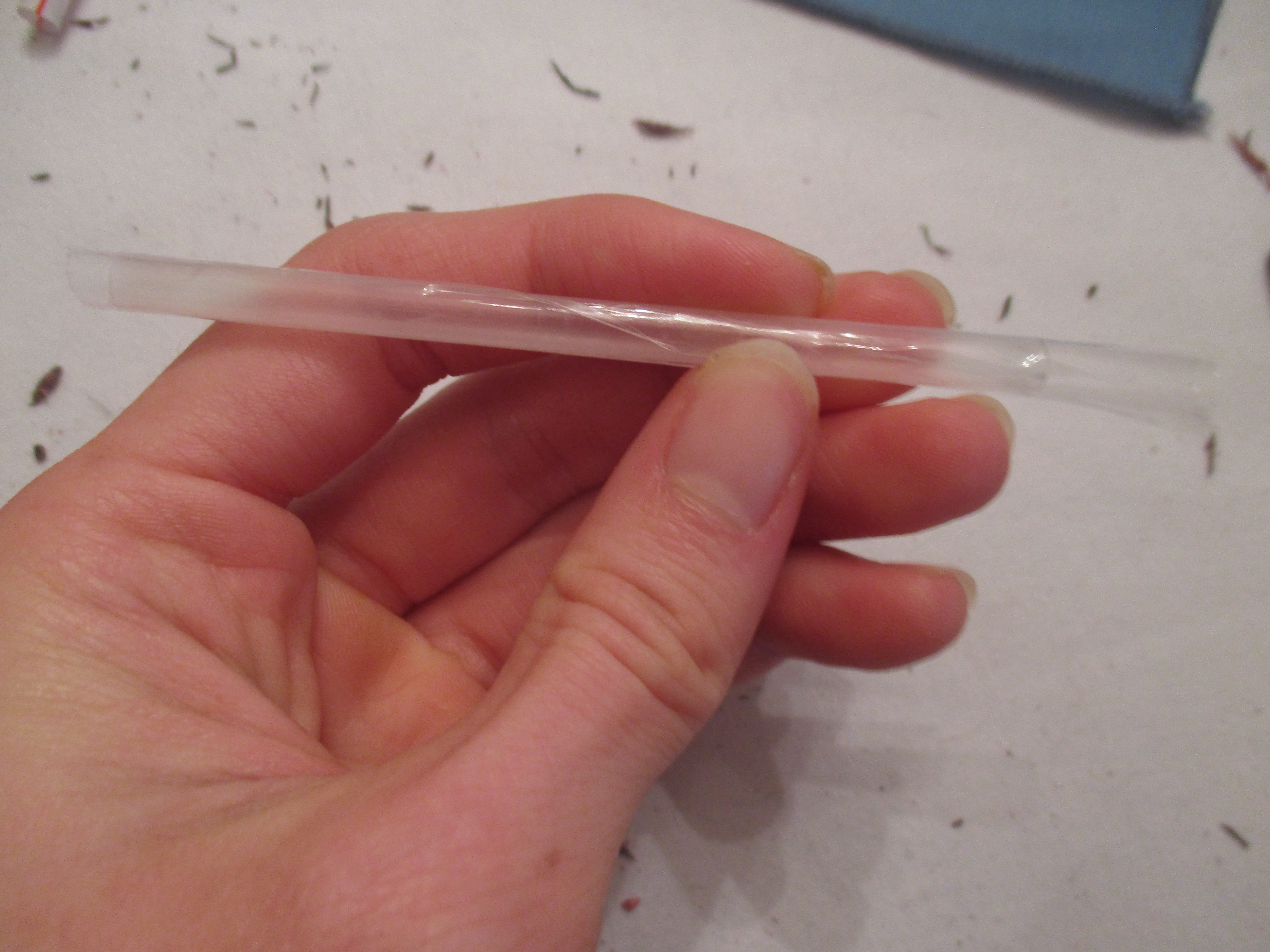 The first step in making the rifle component of the sniper scythe is to make sure the straws can telescope into one another. One straw was already slightly larger than the other and saved me a step.