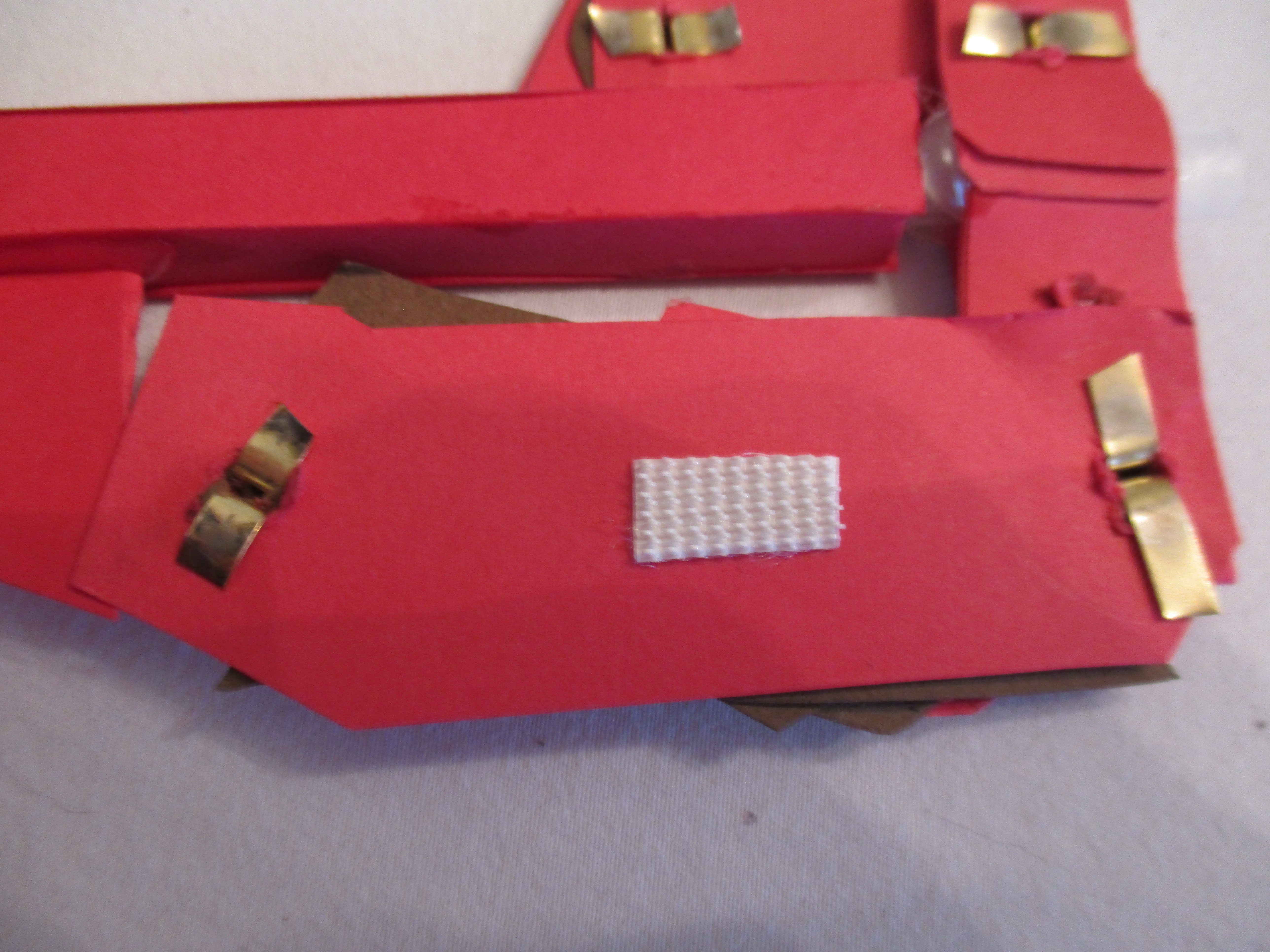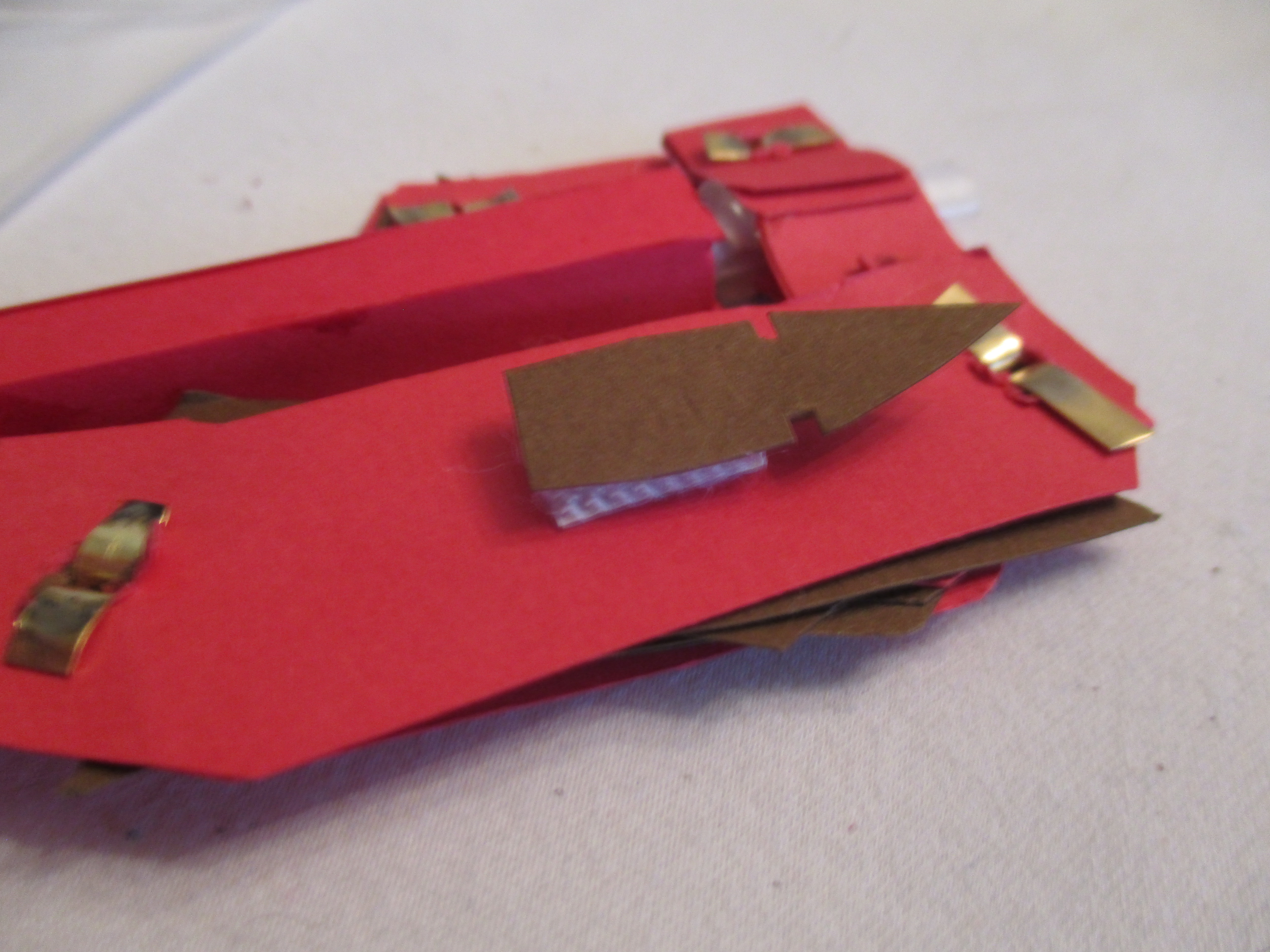 I decided to go with red and brown cardstock to make it more visually appealing. The brown parts represent bladed portions.