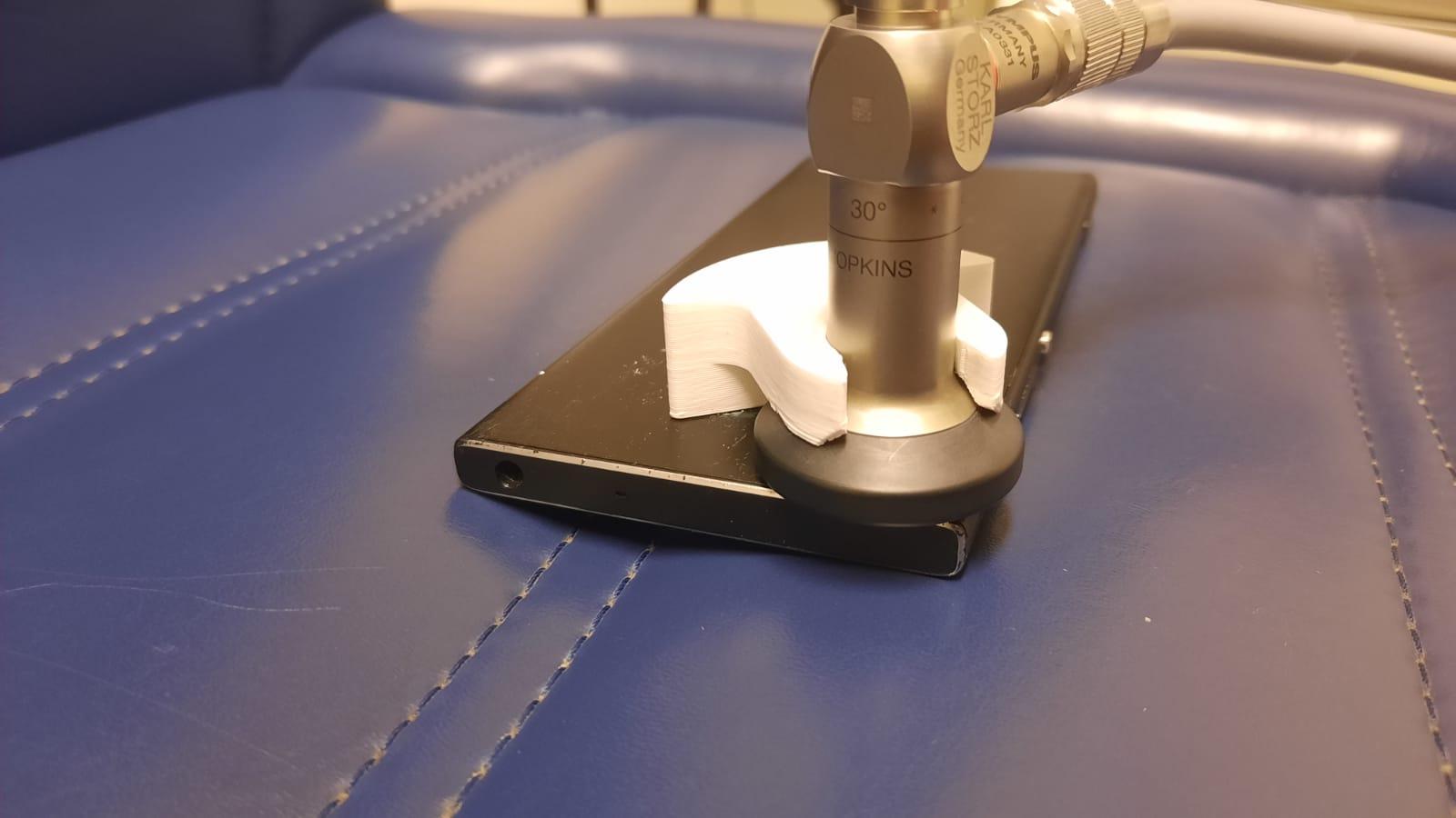 The adaptor is needed as a lightweight and cost effective image capturing solution for an endoscope in combination with an old phone. (Especially for medical training)